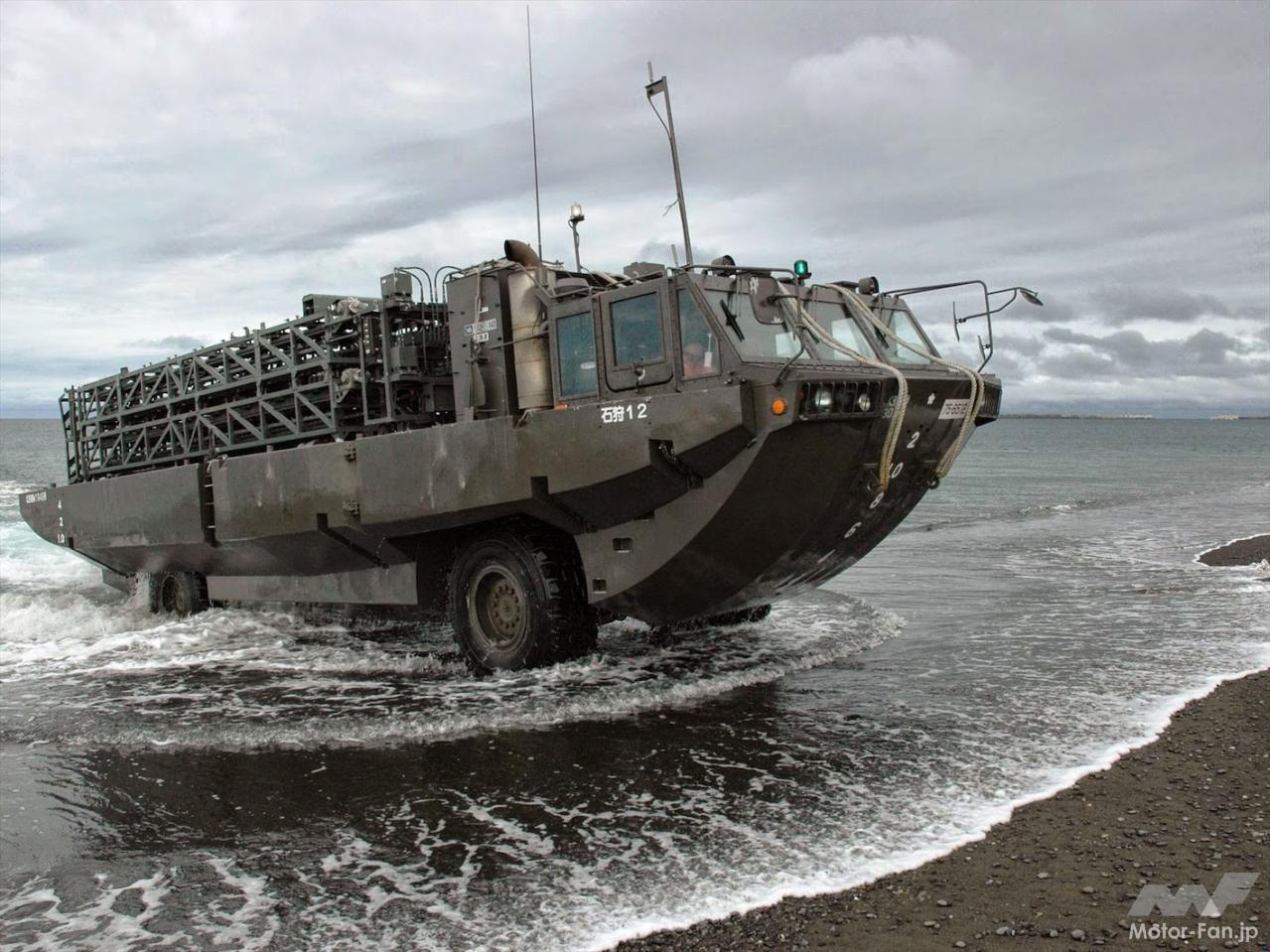 本装備は世界的にも類似例を見ない非常に珍しい存在だ。独創的と言えるかもしれない。水陸両用車にワンセットを詰め込むという、決まった枠組みの中で生真面目に性能や仕様を向上させ、独自化するのは日本人の得意とするところ。一方で、このようにニッチなモノ作りは諸外国軍には不可思議に映るだろうとも思う。地雷を撒くなら他の手段もあるわけだし、実際、陸自は同様な水際地雷敷設装置をヘリコプターで吊り揚げ、水中地雷を空中投下する運用も行なっている。一方で、装置を積んで陸路を自走し、要所の海域にピンポイントで素早く敷設するなどの運用には本装備は適している。車両だからフェリーなどで離島地域にも運びやすい。