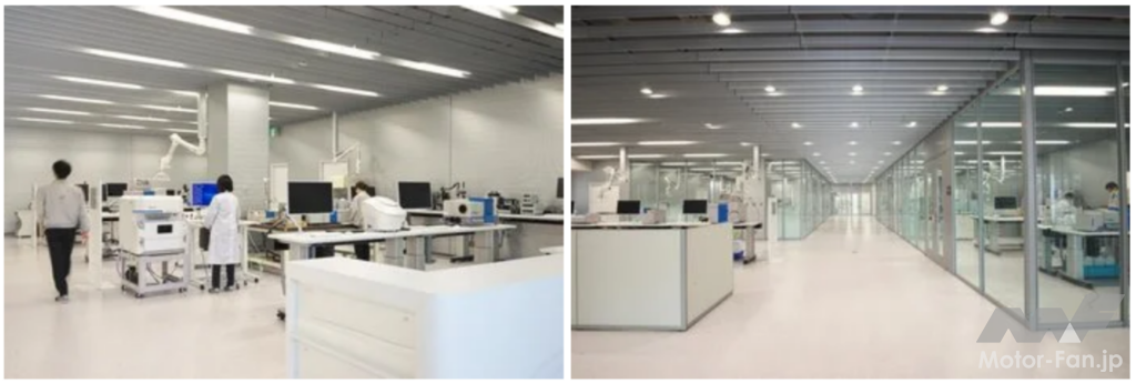 Vehicle Test Cellのすぐ近くには、HORIBAが得意とする化学分析を行うAnalytical Solution Plazaが隣接しており、Vehicle Test Cellでの試験に用いた車両の部品を抜き出して行う劣化度合いの評価などにも対応する(例:エンジンオイルやギアオイルといった消耗部品における、長時間走行前後の品質評価)。車両試験と部品評価のデータをその場でつないで解析するソリューション提供により、顧客の開発効率化・加速化に貢献する。