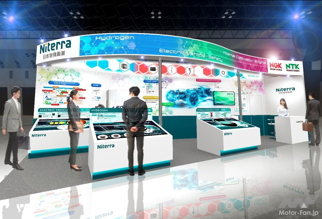 全領域空燃比を検知可能で、より厳しい排気ガス規制への対応が可能な全領域空燃比センサ、車両から排出される排ガスをクリーンに(有害排気ガスを削減)し、健康や環境への負担を軽減する NOxセンサ、及び水素エネルギー社会において今後想定される排気ガス規制への対応に貢献する水素エンジン向け排ガスセンサ(開発中)が展示される。