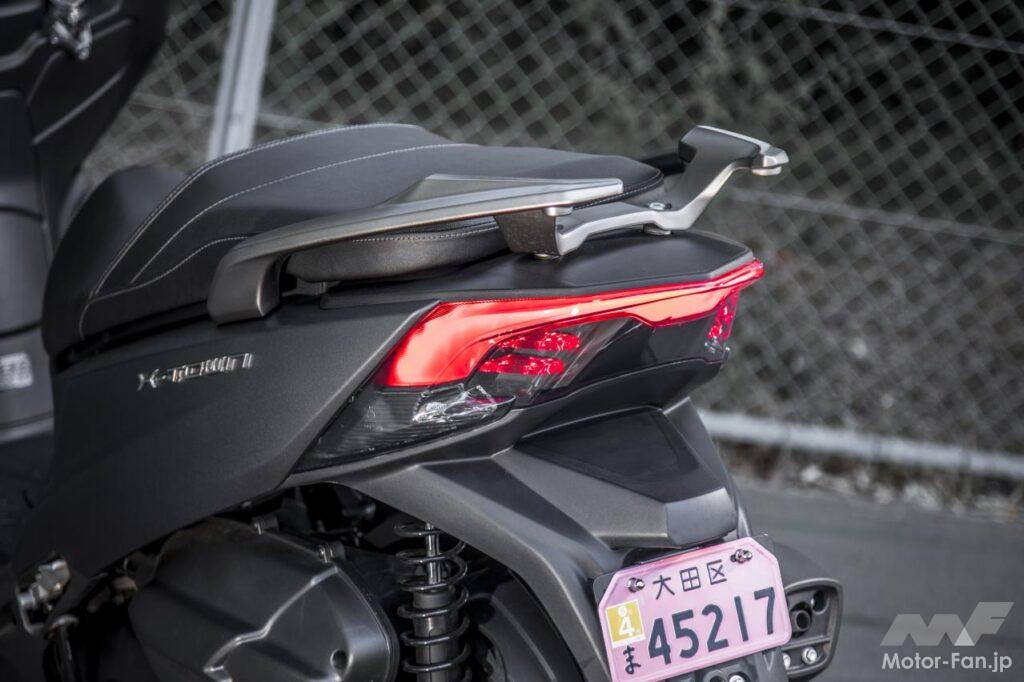 このXタウンCT125、300と共通シャシーという大柄なボディながら、乗り降りのしやすいフラットフロアを採用しているのが最大のポイントだ。剛性を確保するのが難しいアンダーボーンフレームのまま、足を伸ばせるほどのフロア長を確保したのは注目に値する。しかも燃料タンク容量は、フロアトンネルを持つホンダのPCXより2.4リットルも多い10.5リットルを公称。こうしたパッケージングの妙、さすがはスクーター大国生まれだ。