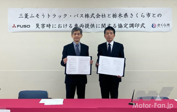 自動車ニュース プレスリリース 三菱ふそう MFTBC、栃木県さくら市と災害時連携協定を締結。災害時にトラック・バスを提供し自治体連携を強化 2025.05.20 14:00 by Motor Fan illustrated編集部 この記事の画像をもっと見る(全3枚) 三菱ふそうトラック・バス(MFTBC)は、MFTBC 喜連川研究所が所在する栃木県さくら市と「災害時における車両提供に関する協定」を締結したことを発表した。 MFTBCが栃木県さくら市と締結した協定は、地震や風水害などの災害が発生した場合、MFTBC から物資運搬用のトラックおよび避難者移動用のバスをさくら市へ提供するためのものとされる。また、さくら市地域防災計画に基づいて災害対策本部を設置した場合に、さくら市が MFTBC に対して必要な支援協力要請をできることも規定されている。同日、さくら市役所において、本協定の締結式が実施された。 三菱ふそうトラック・バス 代表取締役会長 永塚誠一(左)さくら市長 中村卓資(右) 喜連川研究所 プレスリリースの関連記事