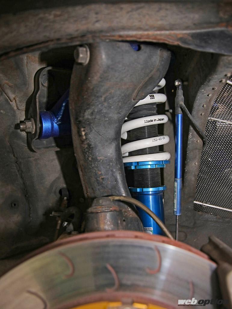 足回りはアドミクスオリジナルのダンパーをベースに構築。アーム類やアライメントなども、FR化に合わせてアドミクスで最適化されている。