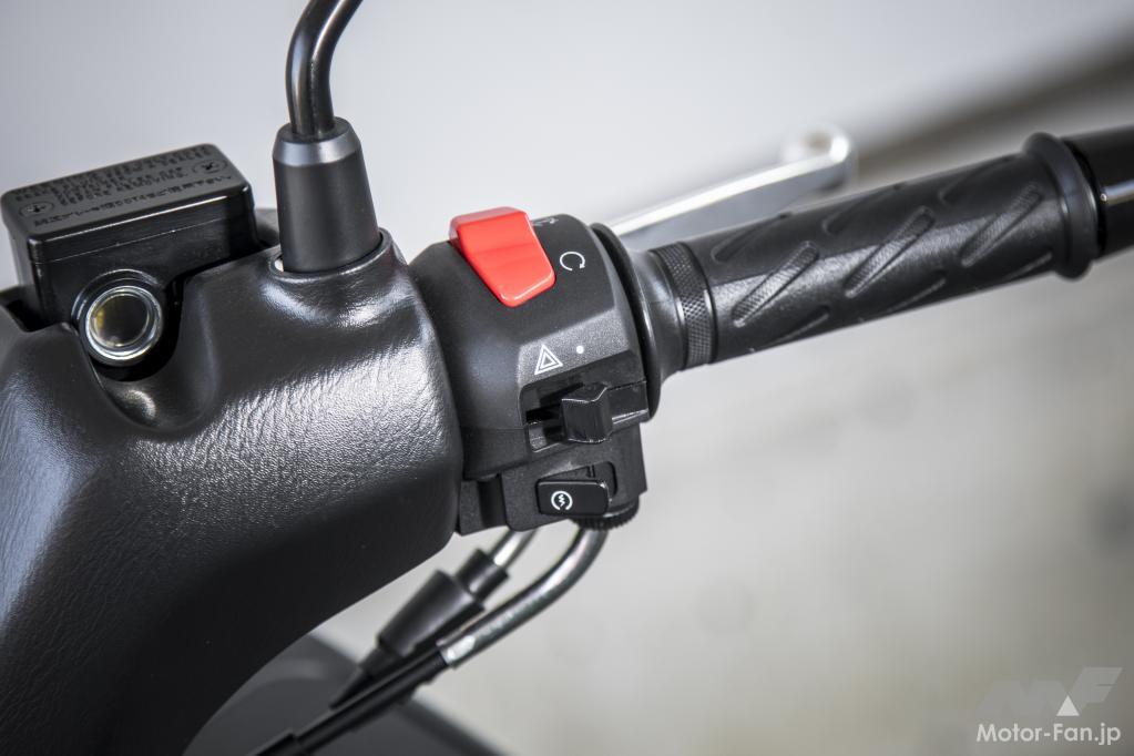 スイッチボックスは標準的な装いで、何も戸惑いはありません。ハンドル右にはハザードスイッチが備わっています。