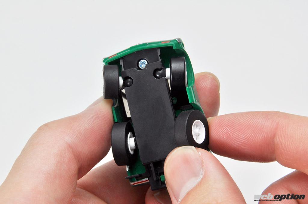 プルバック式ゼンマイを搭載する一般的なチョロQとは異なり、このQ’sは動力機構を撤去して代わりにボールジョイントでフル可動するタイヤを採用。チョロQのスタイルはそのままに、フォトジェニックなポージングを可能にしたのだ。