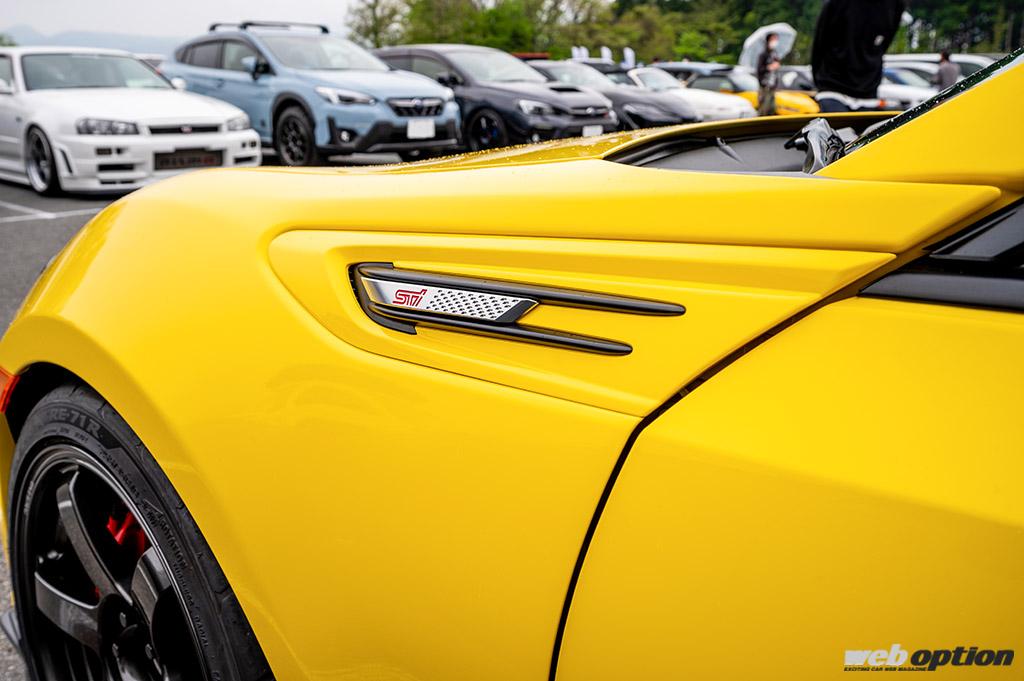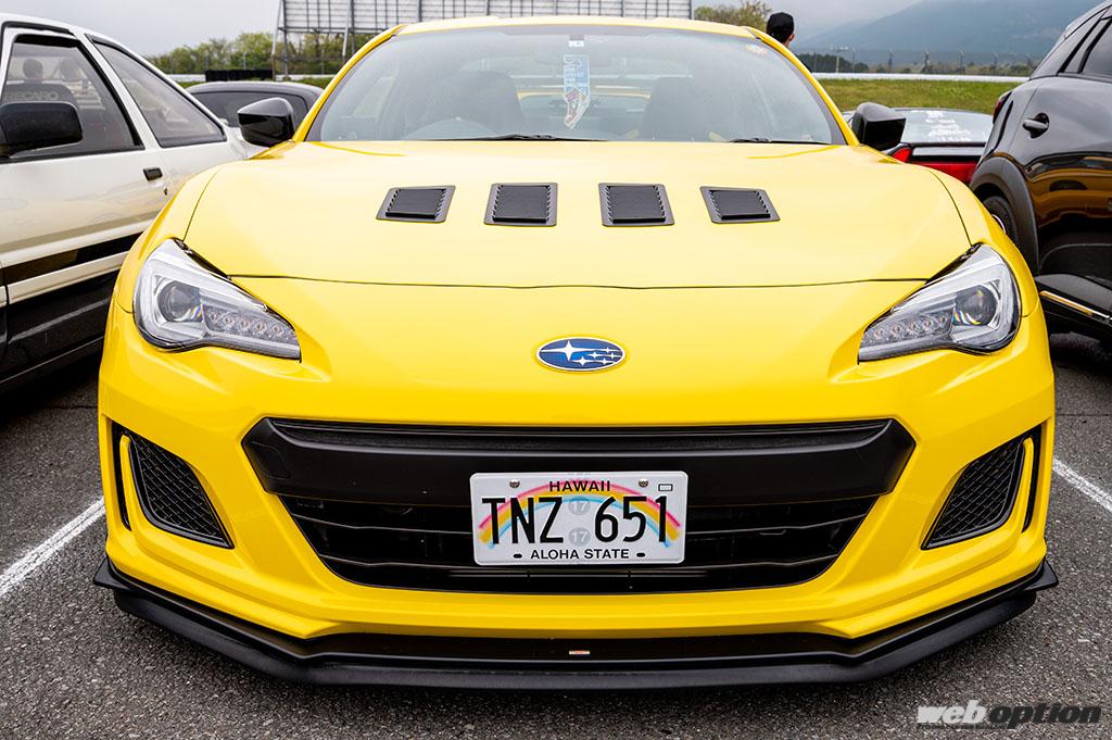 イエローカラーが眩しいこのZC6型BRZは、100台限定のイエローエディション。オーナーの“てら”さんは、元々ロードスターを探していたそうだが、「ディーラーの友人から『キャンセルが出たので買わないか』と相談されたんです。これも縁だなと感じて、購入に踏み切りました」とのこと。