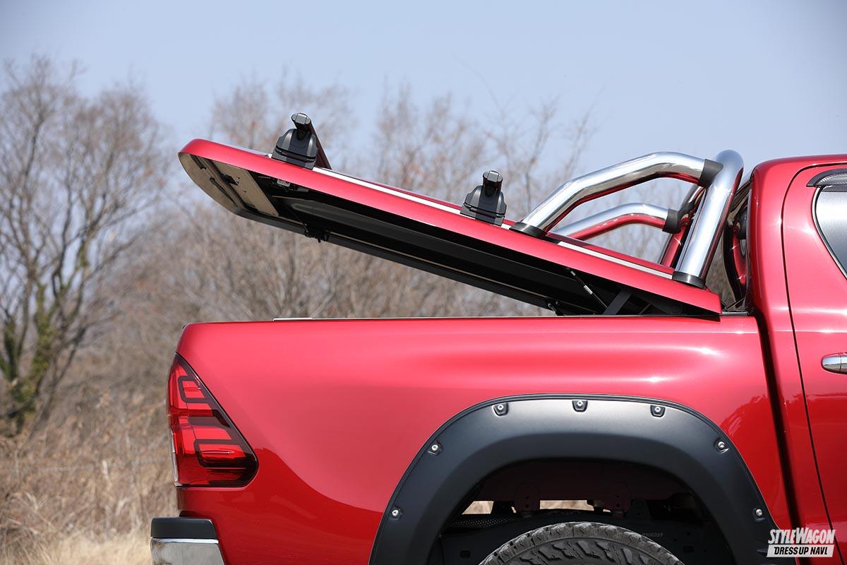 ハイラックスのトラックルックをキープしつつ、デッキを活用できる機能的なトノカバーがほしい。そんなユーザーにおすすめなのがプロフォームのトノカバー「スポーツリッドV」だ。