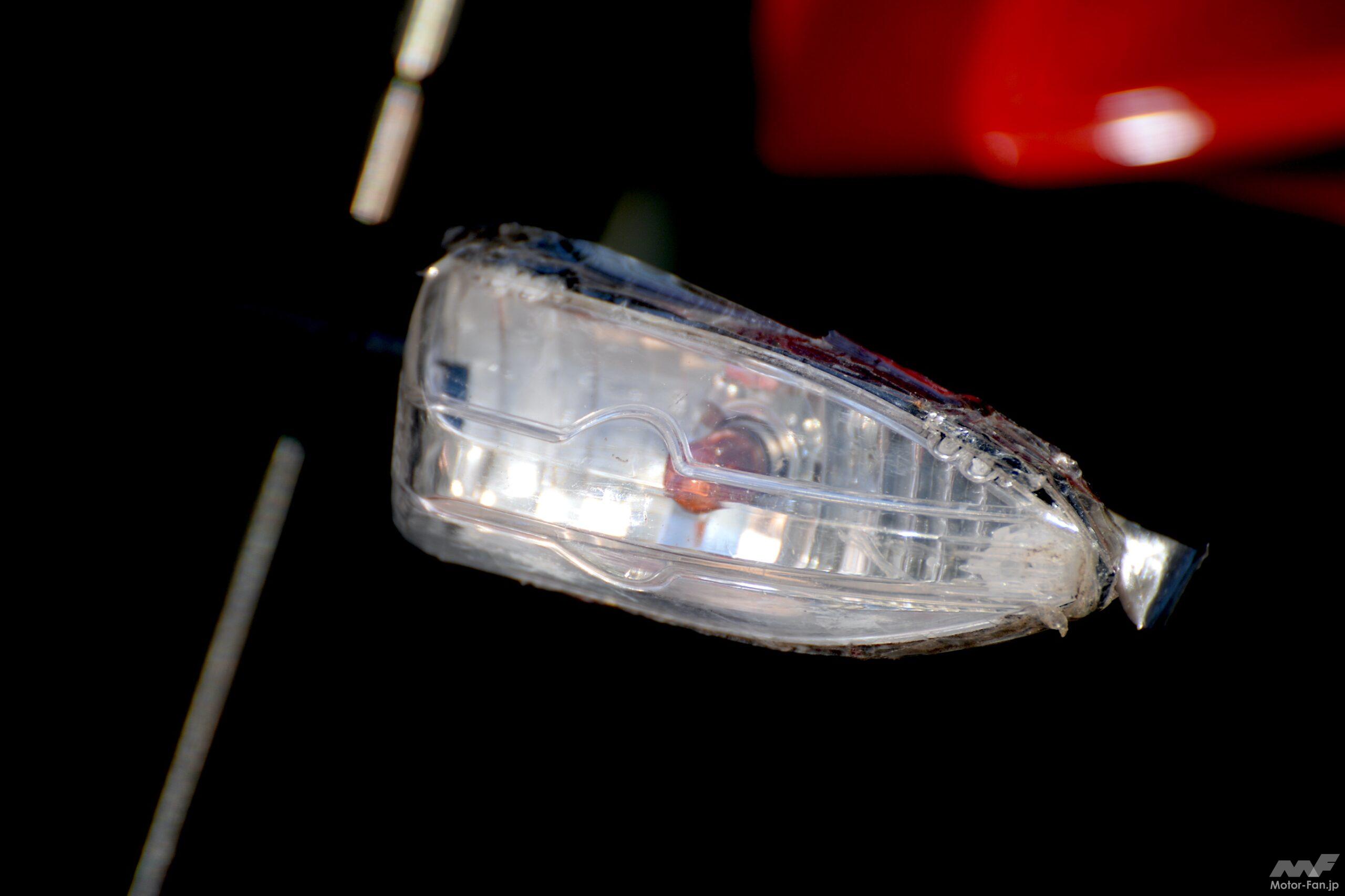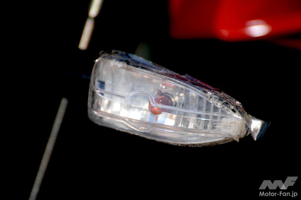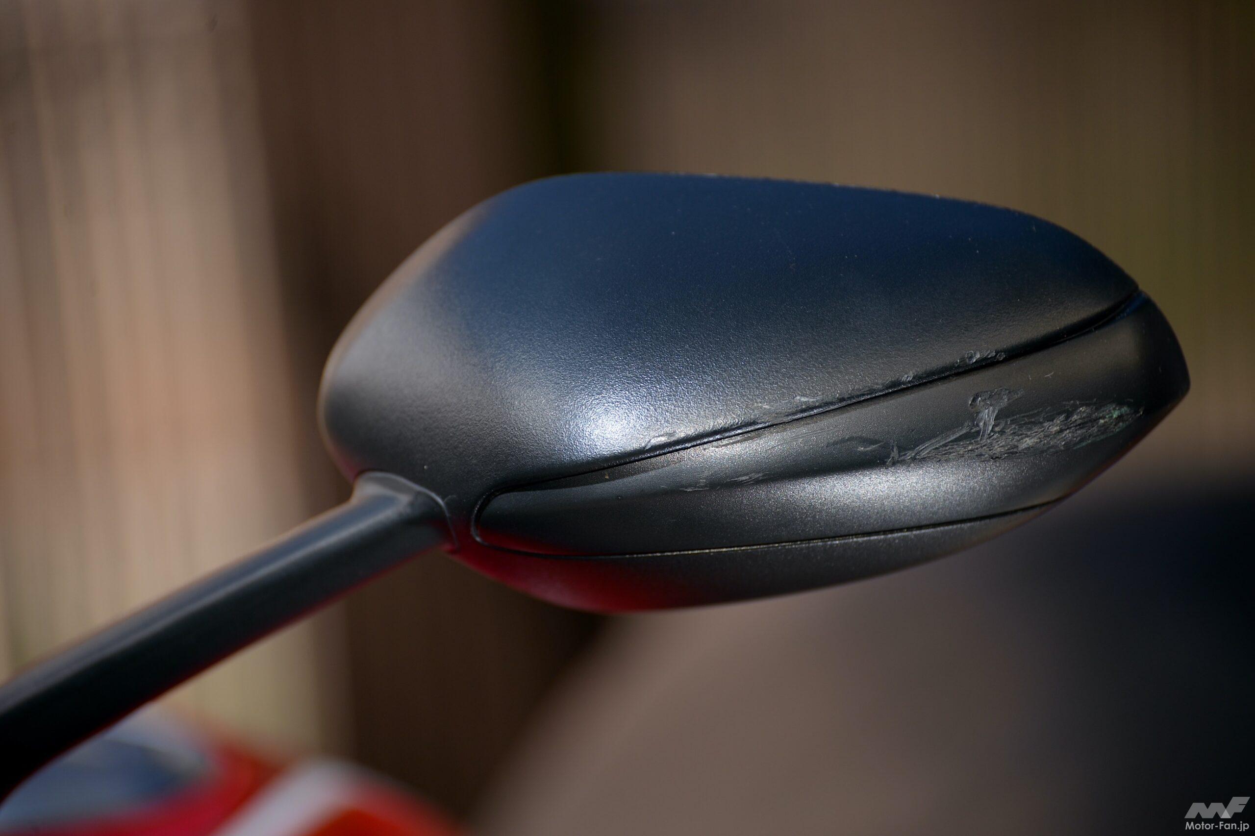 納車を前に前後サスペンションは最弱付近まで減衰力を下げてほしいとオーダーしていた。体重の軽い(58キロ)筆者だと、乗車しても沈み込みはほぼ期待できないし通常走行時でも乗り心地が悪く感じてしまうから。ところがそんなことは関係なくコケる時はコケる。ブルターレに傷がついてしまったが、我が心にも深く傷がついてしまった。はてさて、どうするべきかと納車後からしばし悩むことになってしまったのだ。