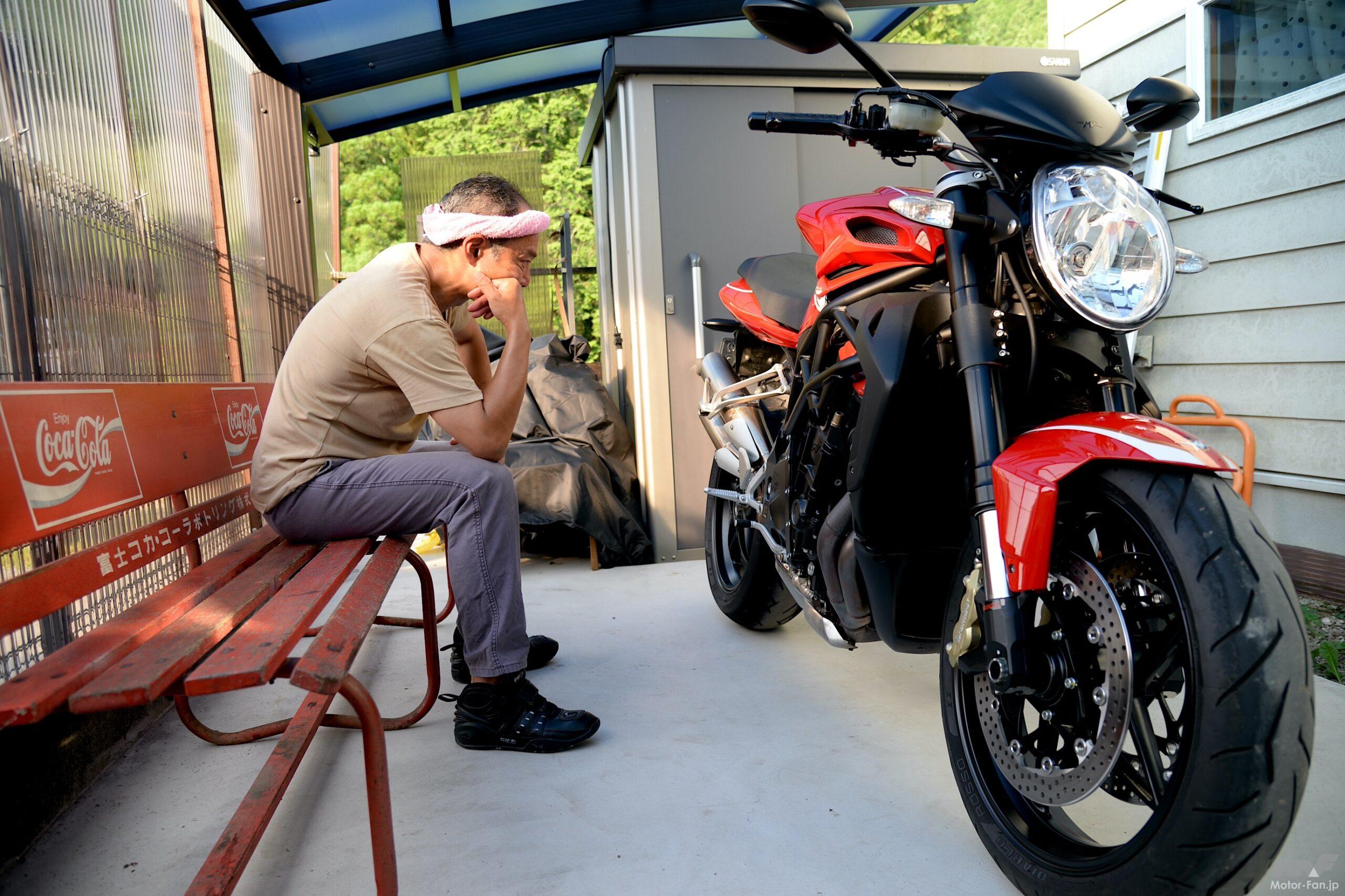 この時点で買う気はゼロ。というのもここで見つけた2012年発売のブルターレR1090はシート高が830mmもある。短足オジサンでは歯が立たないとハナから諦めていた存在なのだ。でもまぁ、試しにとばかり跨ってみるとアラ不思議。両足ともに土踏まず付近まで接地している感触がある。「これはもしや、乗れるんじゃ?」と考えを改めることに。続いてプライスを見てさらにビックリ。とても安いのだ。しかもこの個体は走行距離が3119kmとなっている。何かの間違いでは?と店員を捕まえて話を聞き出すと、新車で販売したご本人で疑問は解消。もう契約してしまいそうな勢いだが、ここは冷静になろうと次の打ち合わせ場所へ向かった。