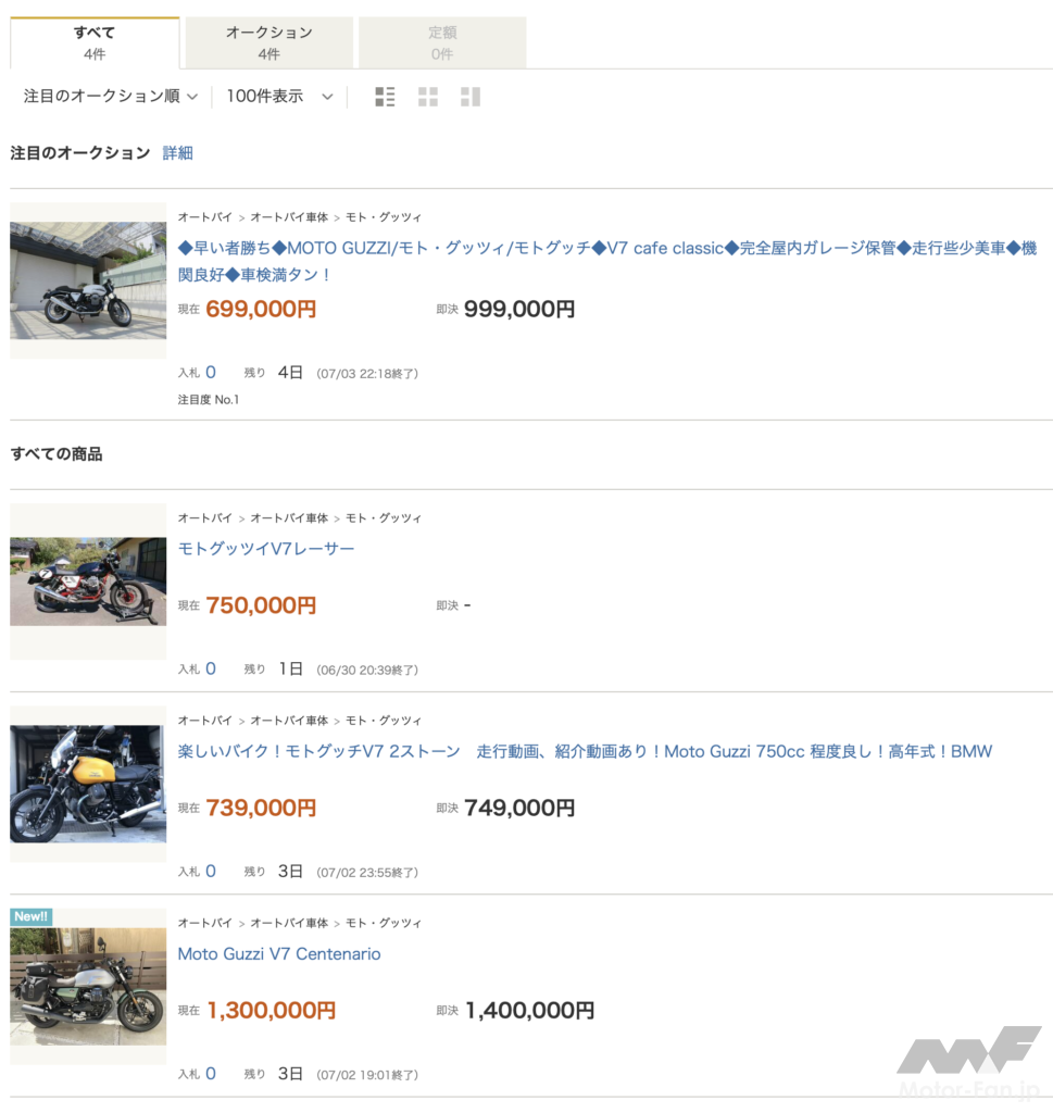 大型リターン宣言は過去に当サイトで記事になった大型バイク購入期も関係している。この記事を書いた山崎さん、実は筆者が過去に在籍した職場の先輩でもある。先輩が最後のバイクライフを始めると宣言して大型バイクを手に入れた。確かに記事にあるよう筆者も50歳を境に視力がさらに悪化して老眼まで厳しくなった。前回の免許更新時の検査で暗いところから明るいところへ出る場合や、その反対においても順応速度が遅いと指摘されている。だから大型リターンするにしても、あまりに激しい性能は求めず一般的な速度域で楽しめるモデルが良いと考えた。実は随分と前に初代が発売された時から気になっていた存在がある。モトグッツィV7ストーンだ。そこで情報を検索してみると、さらに当サイトのことで恐縮だがこんな記事が紹介されている。2021年にエンジンが切り替わり非常に魅力的な存在へ成長していたのだ。そこで都内の新車ディーラーへ行って話を聞いてみた。すると現在納車しているのは半年以上前に契約したもので、これから契約してもロシアがウクライナへ侵攻したことが影響していつ日本に届くかわからないというのだ。そこでヤフオク!を中心に中古車を探してみるも、イマイチ納得できる個体が見つからない。