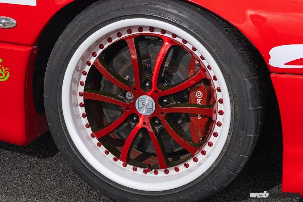 ブレーキはランエボX純正のブレンボキャリパー&ローターを移植。これはアクイラのオリジナルキットとして販売する予定もあるそうだから、興味あるGTO乗りは問い合わせていただきたい。