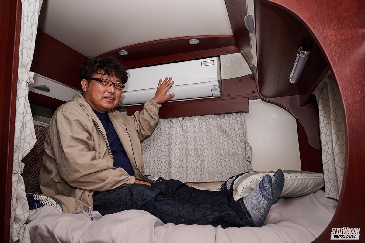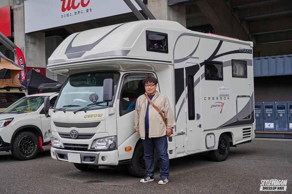 普段はデミオに乗っている黒沼さん。キャンプに興味を持ち始め、念願のキャンピングカーを購入。トヨタのカムロードをベースに、キャンピングカーの老舗であるナッツRVが架装を手がけたクレソンジャーニー。新車で購入したのでオプションは自由に選択できたが、車内で快適に過ごすためにエアコンを追加。季節を問わずくつろげる。