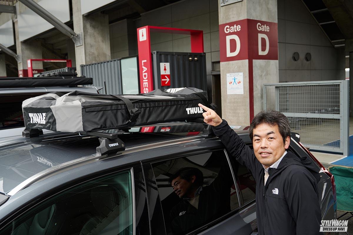 大学生の時に買ったボルボの良さが忘れられず、キャンプを楽しむ目的で再びボルボのオーナーとなった林さん。キャンプ道具を積むために購入したのが、スーリーのルーフバッグ。キャリアやルーフボックスと比べると軽量で、使わない時は簡単に外せる。畳めばコンパクトになるので、収納場所にも困らない。すべてにおいて大満足!