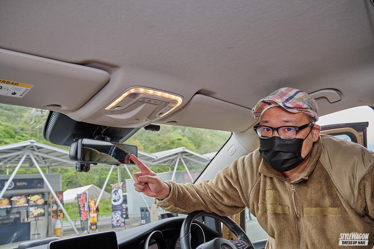 アルファード&ヴェルファイアやハイエースは乗っている人が多い。他と被らないようにメルセデス・Vクラスを購入し、ベージュ&マットブラックで全塗装してアウトドアが似合う仕様を作り上げた。DIYを得意としているため市販のパーツを買うことはなかったそうだが、家族でキャンプに行く時は荷物が満載で後ろが見にくい。そこでAmazonで、デジタルインナーミラーの機能も備えたドライブレコーダーを約2万円で購入。後方の映像をキレイに映し出せるので便利だとか。
