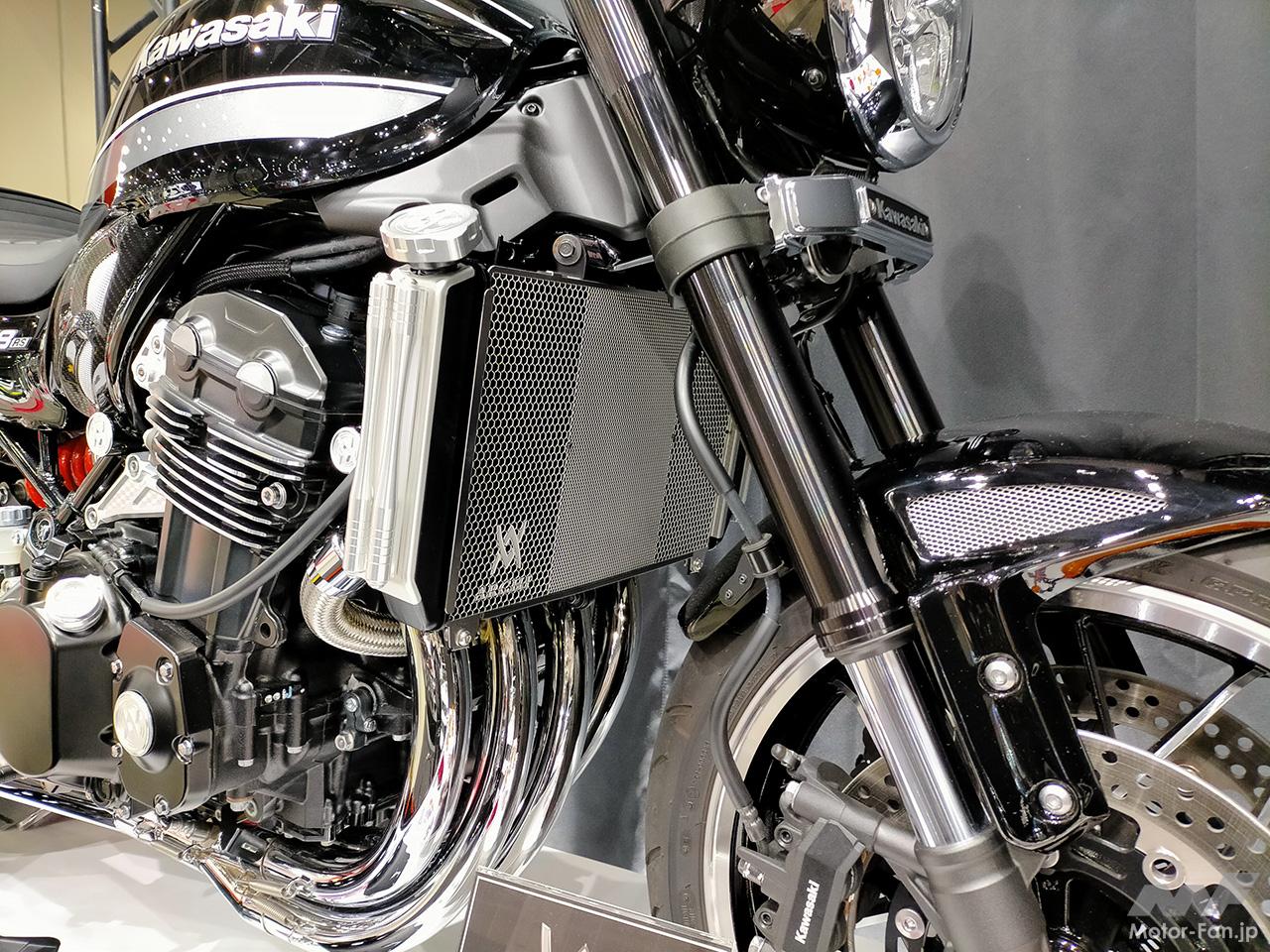 東京モーターサイクルショー2022の「プロト」ブースに展示されたカワサキZ900RS改。フロントに導入されたダブルディスクブレーキには、最新のブレンボ製HPラジアルキャリパーを採用。また車体の外装各部は、ブラック×レッドのブレンボカラーをイメージしてドレスアップ。車体とフロントディスクブレーキに装着されたブレンボ製パーツをナチュラルに繋ぐ、プロトブレンボ製パーツにも注目だ。 PHOTO/REPORT●北 秀昭(KITA Hideaki) プロト https://www.plotonline.com/