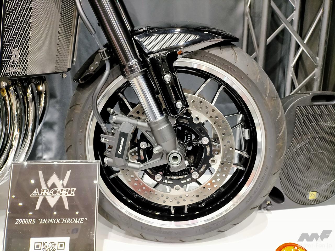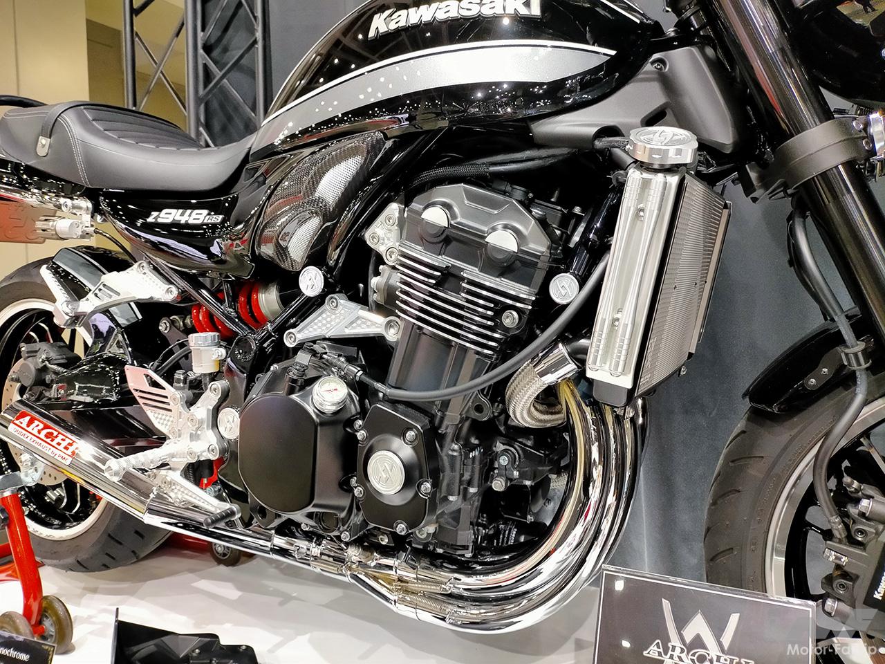 ARCHI(アーキ)のボルトオンパーツをメインにカスタマイズされたカワサキZ900RS。ブランド名の「ARCHI(アーキ)」は、ギリシア語で「起源」を意味する。