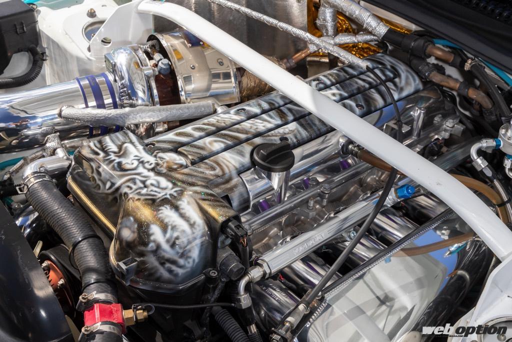 エンジンメイクは、180SX時代からお世話になっているという名将“ガレージGフォース”が担当。HKSの3.4Lキャパシティアップグレードキットを軸に構築された2JZ改は、GTIIIタービンにブースト1.7キロをかけて推定650psを発揮するハイスペックだ。
