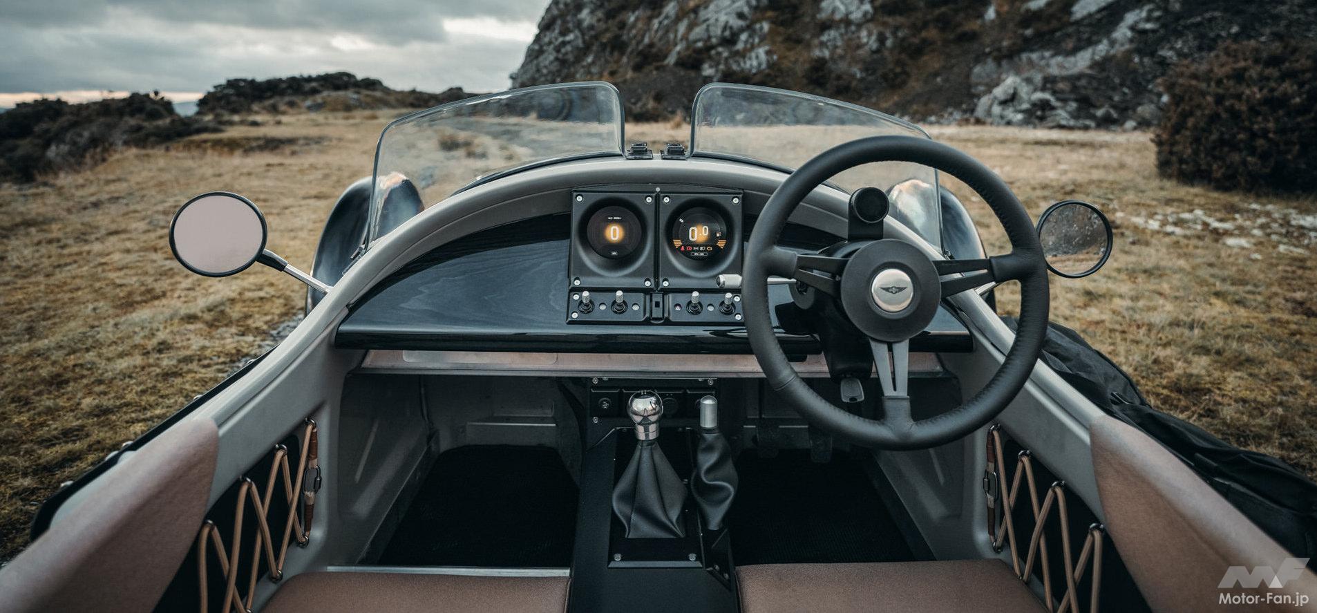 バイクより少しリラックスしながら、2人のミニマムな旅のためのツール。そうした側面をスーパー3は明確化したのだ。もちろん今後にはEV化も重要になってくるが、かつてモーガンはEV3という電気自動車の3ホイーラーを開発していた。市販化まであとわずかというところで、バッテリーの供給の問題で断念した経緯があった。