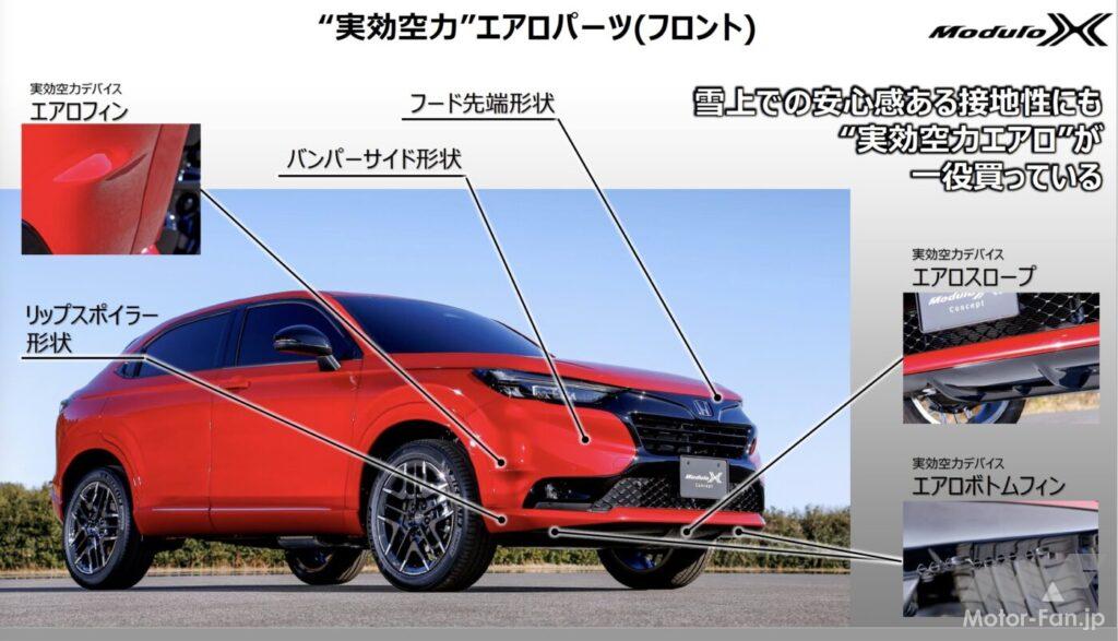 新型ホンダ・ヴェゼルe:HEVモデューロXコンセプトの“実効空力”はフロントマスクにも! 徹底した実車テストを通じて形作られたデザインとは?【東京オートサロン2022】