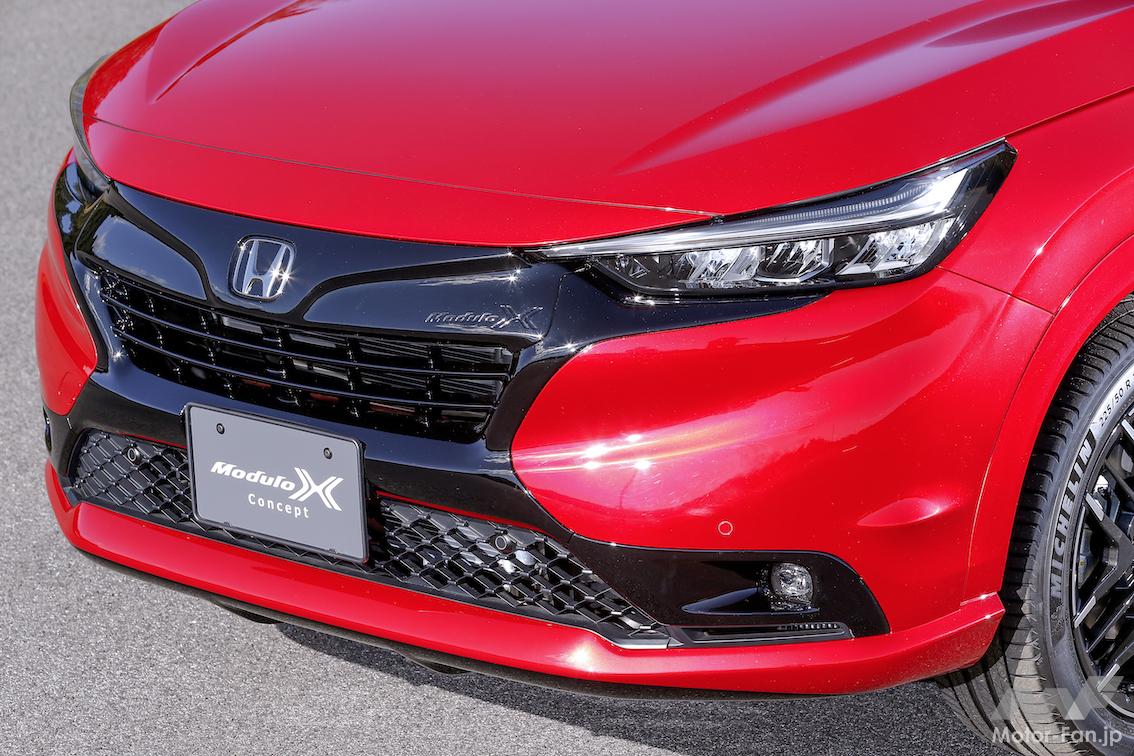 新型ホンダ・ヴェゼルe:HEVモデューロXコンセプトの“実効空力”はフロントマスクにも! 徹底した実車テストを通じて形作られたデザインとは?【東京オートサロン2022】