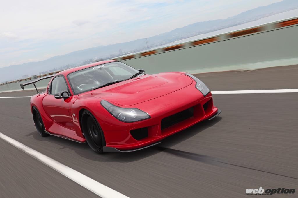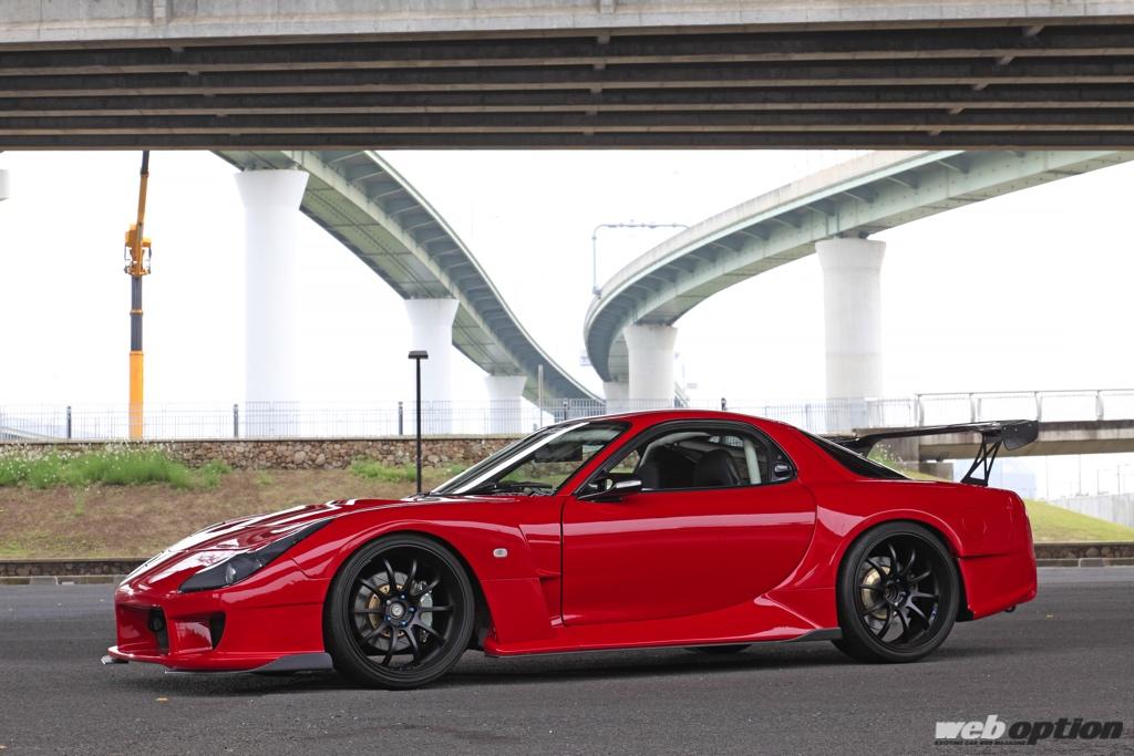 藤田エンジニアリングが開発したオリジナルボディキット「AFFLUX ver.V」で身を包んだ真紅のFD3S。