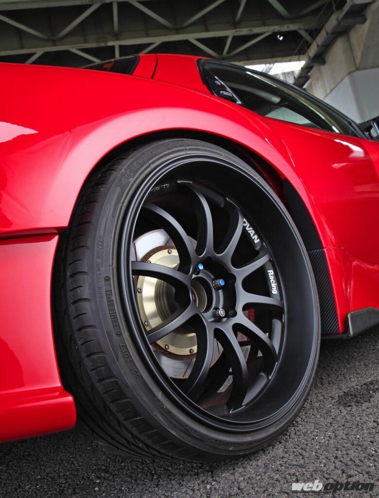 心臓部の13B-REWは、フジタエンジニアリングでエンジンオーバーホールを行なった際に、仕様を高速クルーズ方向へとシフト。TO4Rシングルターボ仕様からGT2835Rツインターボ仕様へと大きく変更された。