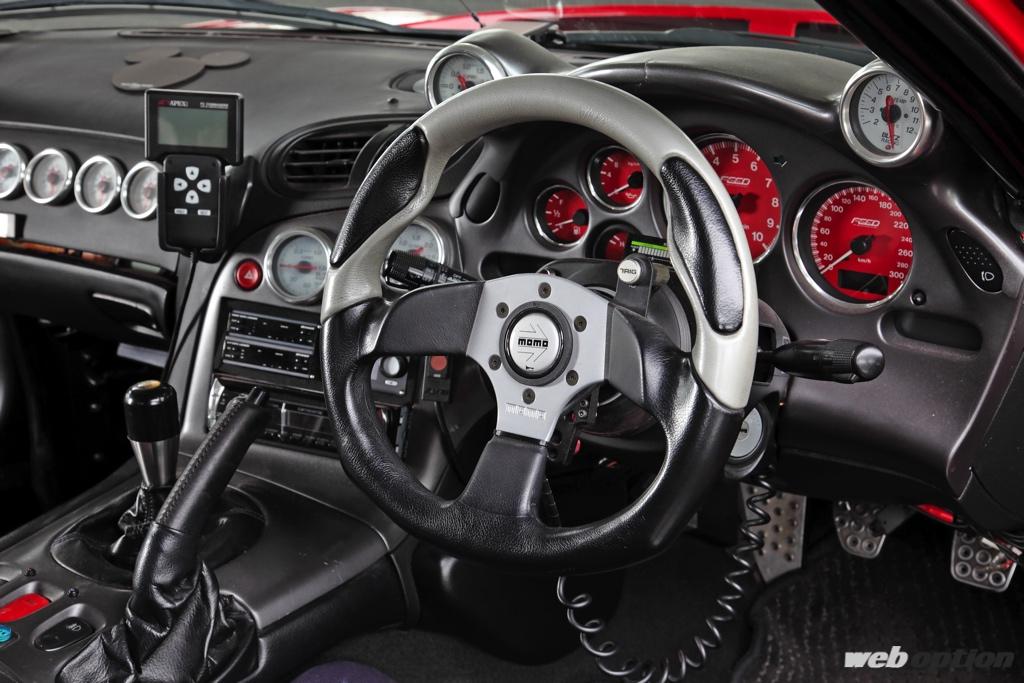 しかし、定期的なフルメンテナンスを繰り返したこのFD3Sからは、過走行車にありがちな疲労感のようなものは微塵も感じられない。オーナーの深い愛情を受けながら、大切に育てられてきたであろうことは容易に想像が付く。細部を見ていく。