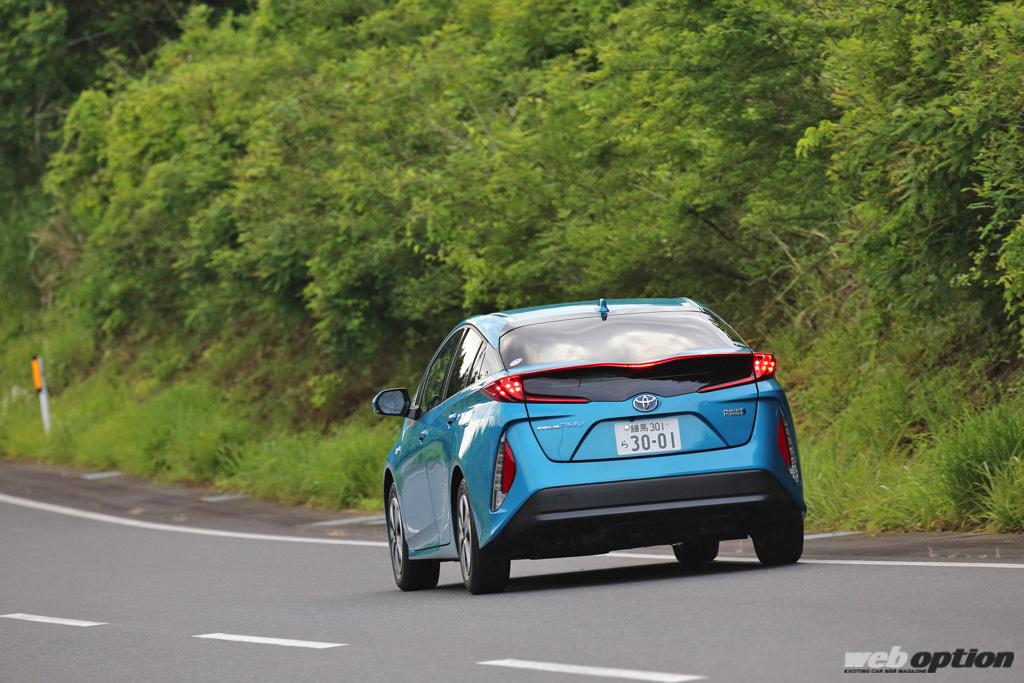 そして、今やエコカーの代名詞とも呼べるプリウスを、充電式のプラグインハイブリッドとして進化させたPHVモデル。駆動方式は発電も行うガソリンエンジンとモーターの2刀流。モーターでの駆動を主体としたエコモードのほか、ガソリンエンジンとモーターを併用するパワーモードも搭載。また加速時はモーターとともにジェネレーターが発生するトルクも駆動力にプラスするため、モーター2個分の加速性能を味わうことができる。EVとしての航続距離は従来モデルの2倍に向上され、満充電で68.2kmを記録する。