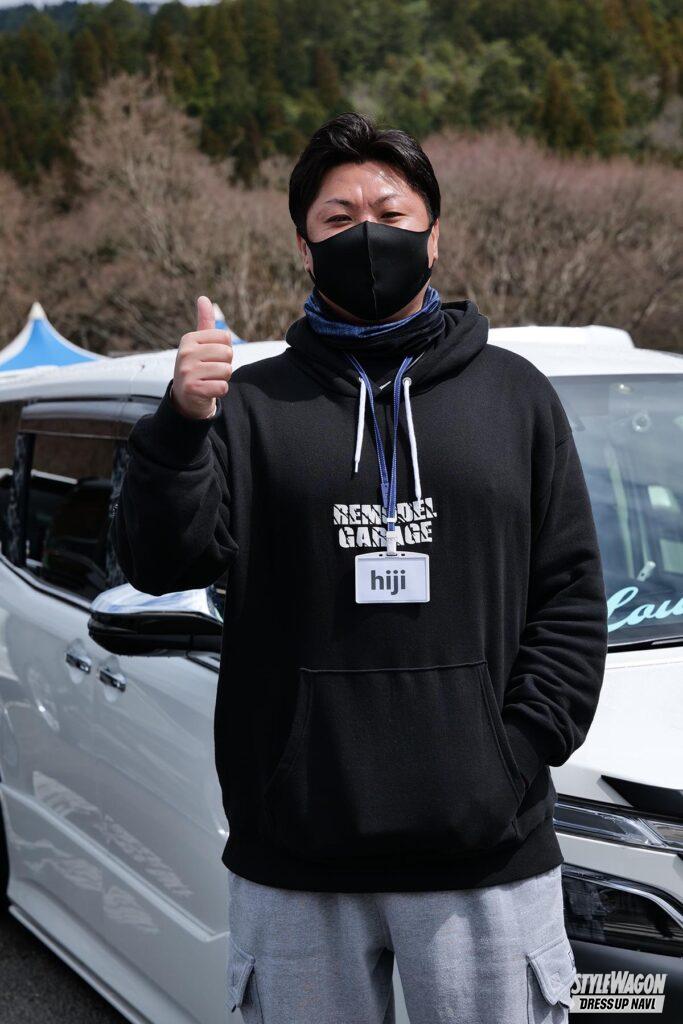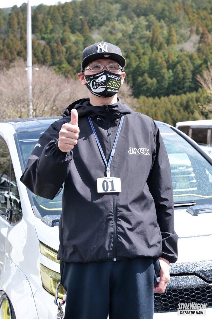 前後GRバンパーに換装した上で、リアは大胆にカット。幅50㎜のワイドフェンダーや前置きインタークーラー、ボンネットダクト、ボンネットウイングなど、まさにGTカーテイストの走る仕様。くまさんはこのオフ会のスタッフで「10月末に第3回予定してまーす、皆さんよろしく!」とのこと。