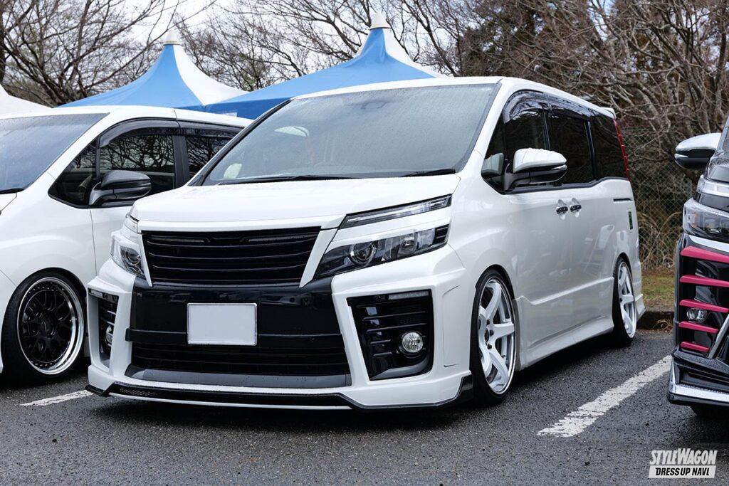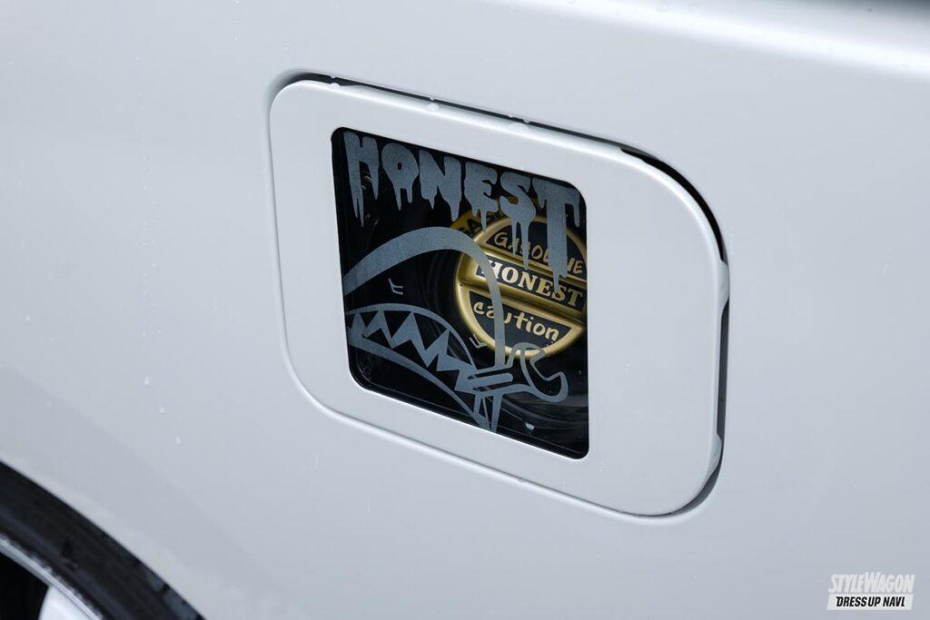 エアロはロェン+クラフテック+アドミという異なるメーカーをミックスしACCのエアサスでローダウン。足もとのワークグランシーカーDMXなど、ハデ目デザインのエアロやホイールをチョイスしながらも、全体をモノトーンカラーでシックにまとめてバランスを取っているひじー。さん。ステッカー製作やピラーのラッピング塗装はDIYながらプロ級の腕前。センスの良い仕上がりに納得だ。