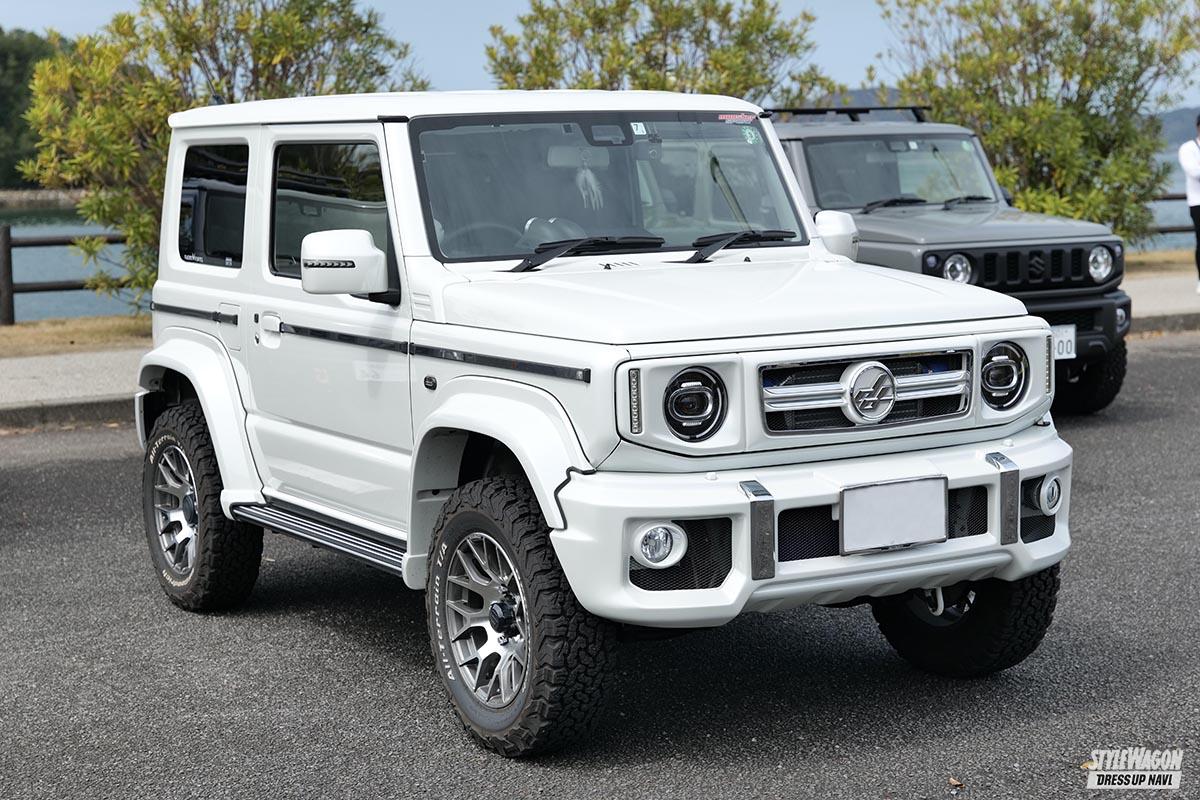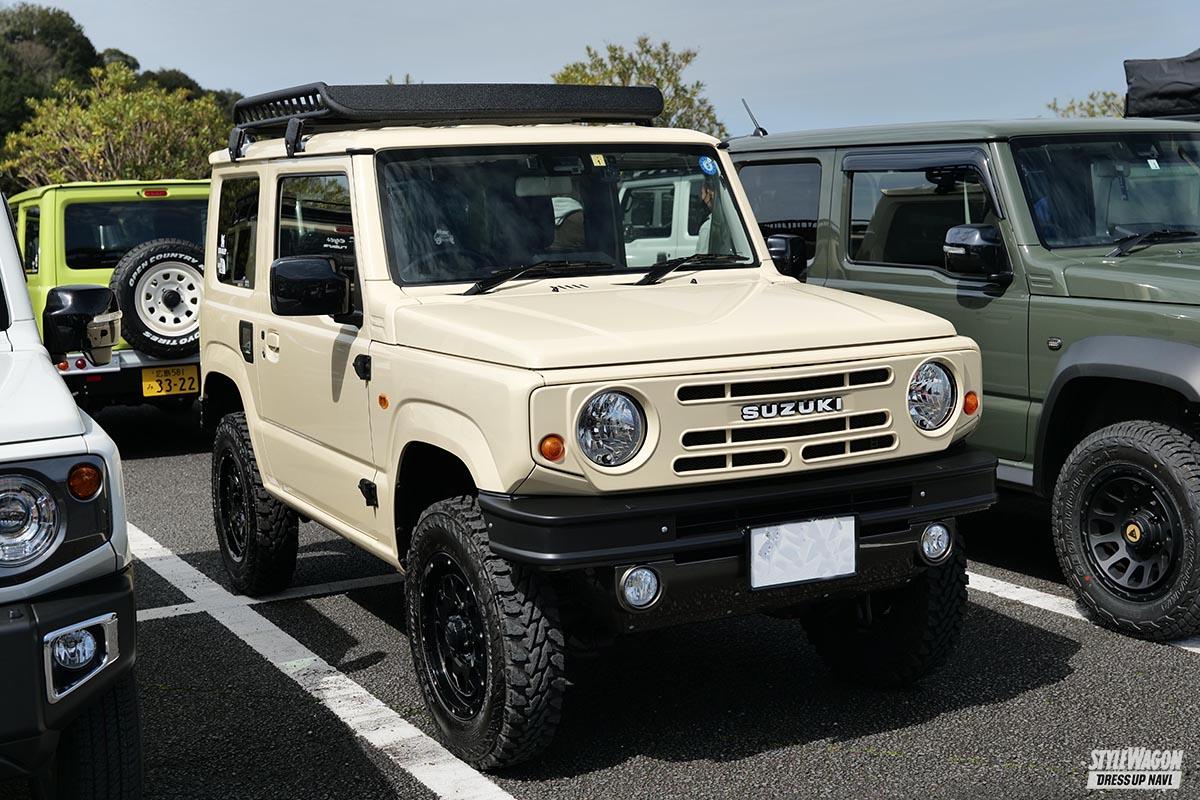 Specificaion ■ホイール/KLC・デイトナバニラ(16×5.5+20)■タイヤ/トーヨー・オープンカントリーR/T(185/85)■エクステリア/F=ペニーレイン、S=PROUD JAPAN、R/グリル=ダムド、給油口=エススタイル