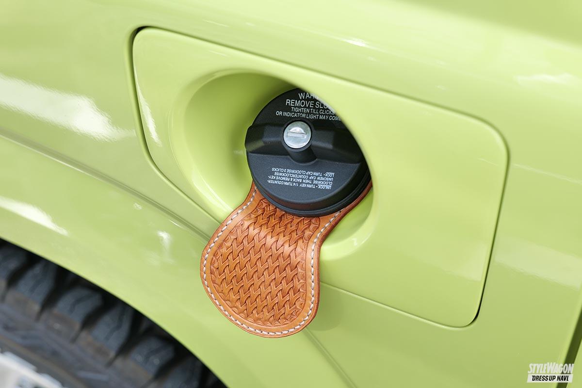 JA11のジムニーをオマージュしたというだけあり、何処となくレトロな雰囲気に仕上がっている“やまびこ”さんの1台。キネティックイエローというレトロ感を出すのには少し難しいボディカラーも、差し色のシルバーやパーツチョイスで上手く演出。給油口など細かいところもレトロで押さえてあります。