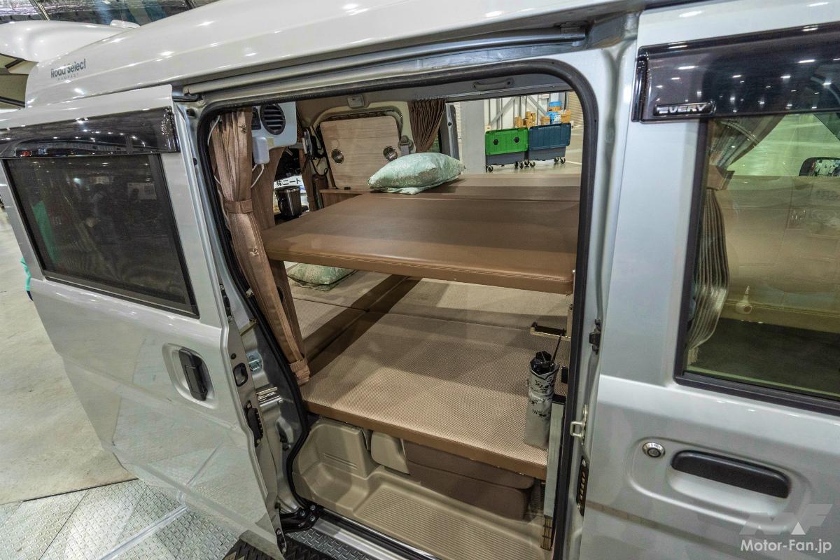 そんな人気軽キャンパーだが、ビルダー各社はかなり苦労して造っている。それは空間と機能のバランス。軽バンは空間効率に優れたクルマとは言え、やはり軽自動車規格。ハイエースなどとは広さは比べものにならない。そこにキャンピング装備をインストールし、人が1〜2名寝られるようにするわけだから、様々な工夫が必要になる。
