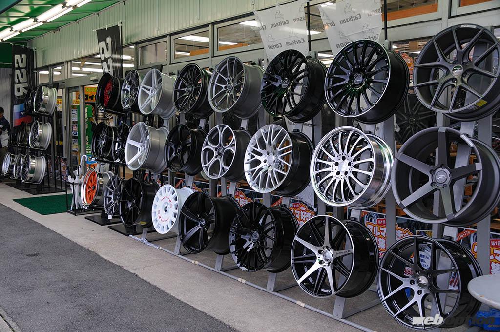 さらに、ホイールメーカーもワークやSSR、OZ、クリムゾンといった一流どころが勢揃い。総数100本以上のホイールの中から、好みのモデルを実車に合わせての確認・スタッフへのサイズ相談も可能とのことだ。