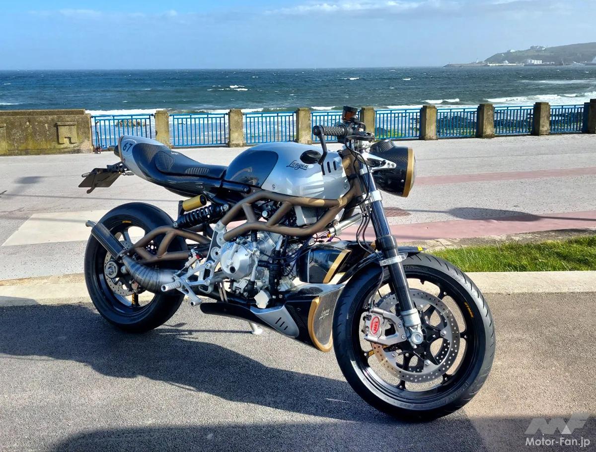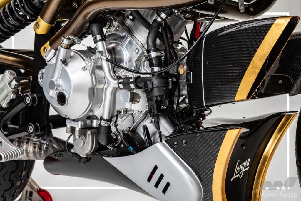 イギリスに本拠地を置くLangen Technologiy社は、Vins Srl社と密に連携しながらストリートモデルを製作しているメーカー。カフェスタイルのランゲン ツーストロークは、軽量なアルミ製パイプフレーム(7020T6アルミニウム合金)に、Vins Srl社の2スト249.5ccエンジンを搭載したストリート用モデルだ。