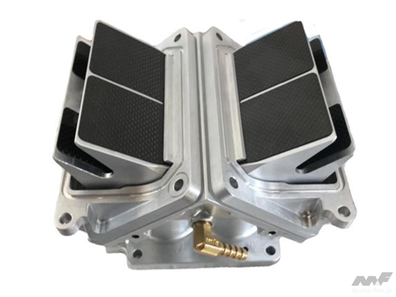 オリジナリティに富んだ吸気系もポイント。3件の特許を取得し、さらに数件を申請中というインジェクション式の燃料供給システム(電子制御燃料噴射システム)は、気筒当たり1本のインジェクターをリードバルブ上流に設置して、吸気量はギロチン式スライドバルブでコントロールする仕組み。スロットル全開時の吸気量を確保しつつ、アイドリングから正確に吸気量を制御し、抜群のドライバビリティと実用的なパワーバンドの獲得を実現。