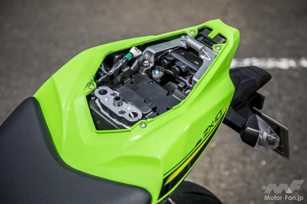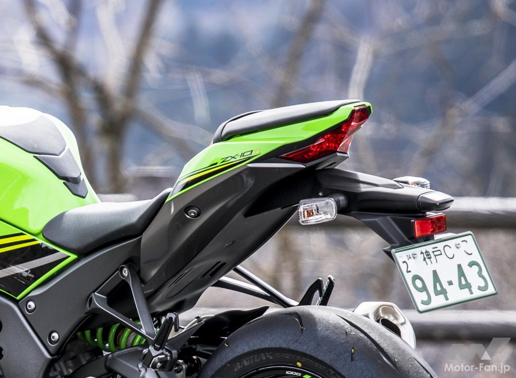 そしてチタニウム製コンロッドの採用を始めサスペンションもファインチューニングを徹底。タイヤはピレリ製ディアブロ・スーパーコルサSPを履く。シングルシーターとし、世界で500台という限定生産でプレミアム性が追求されたZX-10RRの3機種がリリースされている。