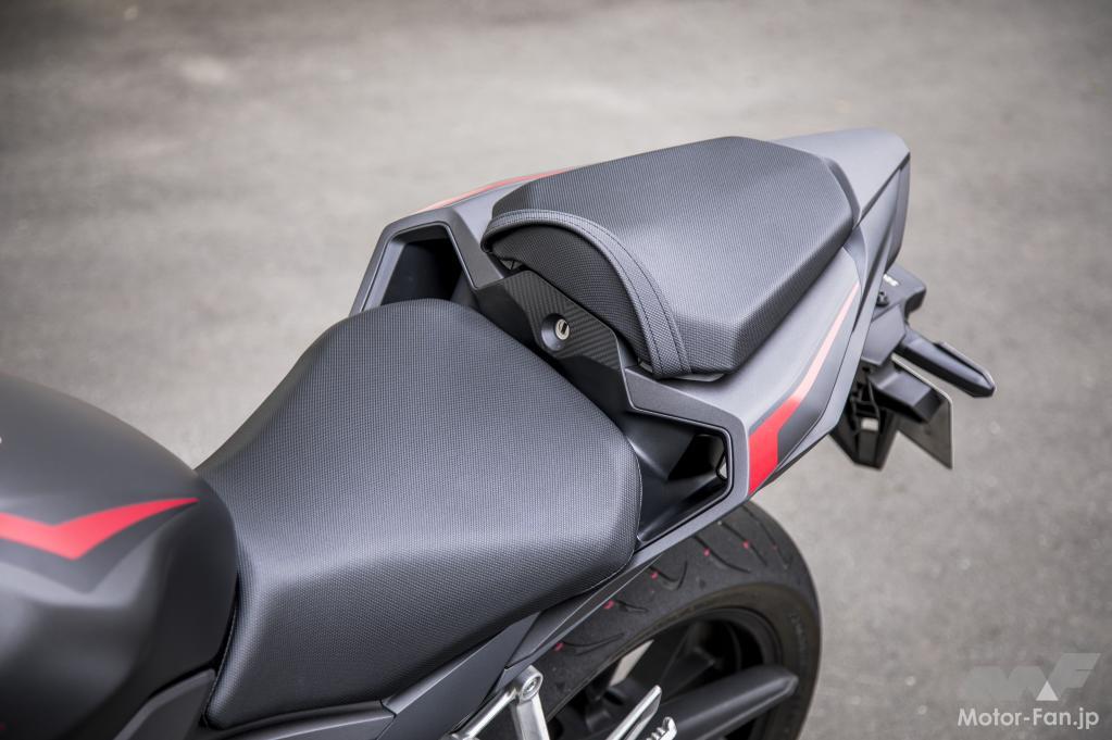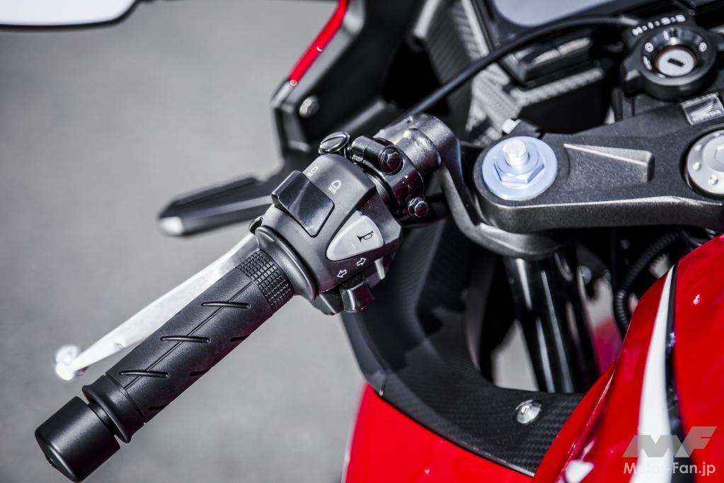 バルブタイミングやリフト量の最適化も相まって、特に3000~7000rpmのトルクは3~4%も向上。ピークトルクも膨らみ、最高出力発生回転数は9500から9000rpmに低くなったのも見逃せない。緻密な回転センシングと吹け上がり感を強調した燃料噴射セッティングも施され、より扱いやすいスロットル制御を実現していると言う。