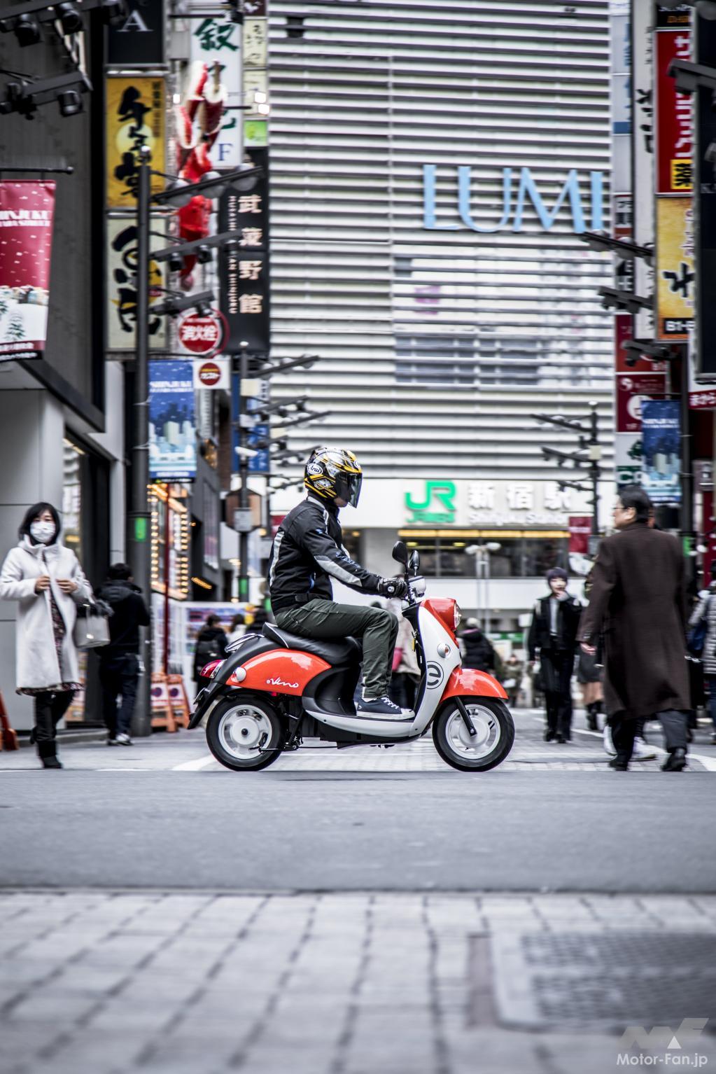 そんな出川さんが番組中に乗って走っているのが、ヤマハ「E-Vino(イービーノ)」。今回、実際に乗ってみますが、レトロポップな可愛いスタイルで見るからにお手軽。もちろん免許は必要で、該当するのは原付一種免許です。ガソリンエンジンで言うところの50cc以下のカテゴリーで、クルマの普通免許を持っていれば付帯しています。