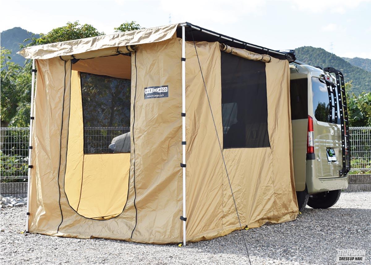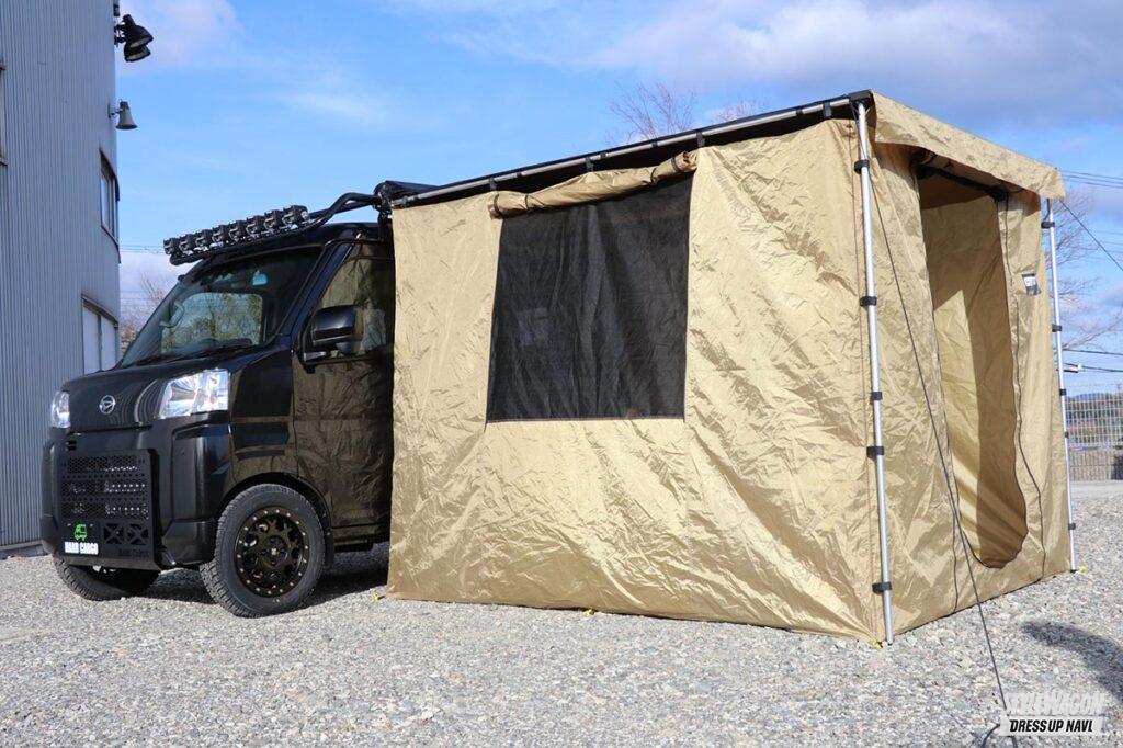 さらに近年のアウトドアブームを受けて、ハードカーゴはアウトドアでの使い勝手にも配慮した、遊びのためのバリエーションも拡充。フェアリングにライトを搭載したパーツやオーニング、ルームテントなど、シンボルアイテムであるルーフキャリア以外にも魅力的なパーツを数多くラインアップ。新型ハイゼットカーゴ用、アトレー用も新たに追加された。
