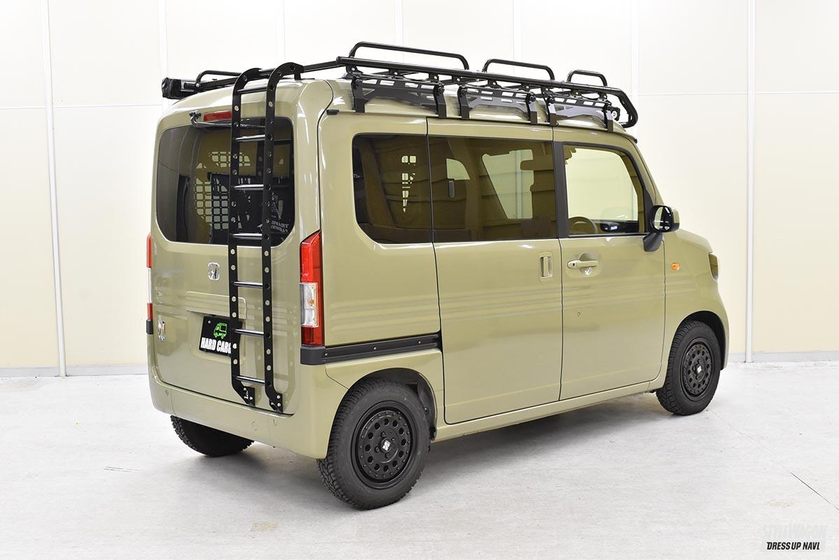 Nバン用のアイテムは、フラットキャリアやラダーといった定番モノも便利だが、特に車内の使い勝手を飛躍的に向上させられるブラケット類に注目。ユーティリティパネルとセット使いできるハンガーブラケットは、洋服やカバン、仕事道具を吊り下げてラゲッジ内を整頓可能。バスケットブラケットはラゲッジ上部に収納棚を増設できるパーツで、バスケット型で荷物が落下する心配もなし。キャビンを荷物から守るラゲッジネットも便利。
