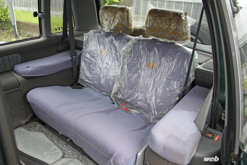 シートには純正アクセサリーとして用意されていたシートカバーを装着。背もたれには“RVR”のロゴが入る。ヘッドレストのビニールは新車時のものだと言うのだから半端ではない。