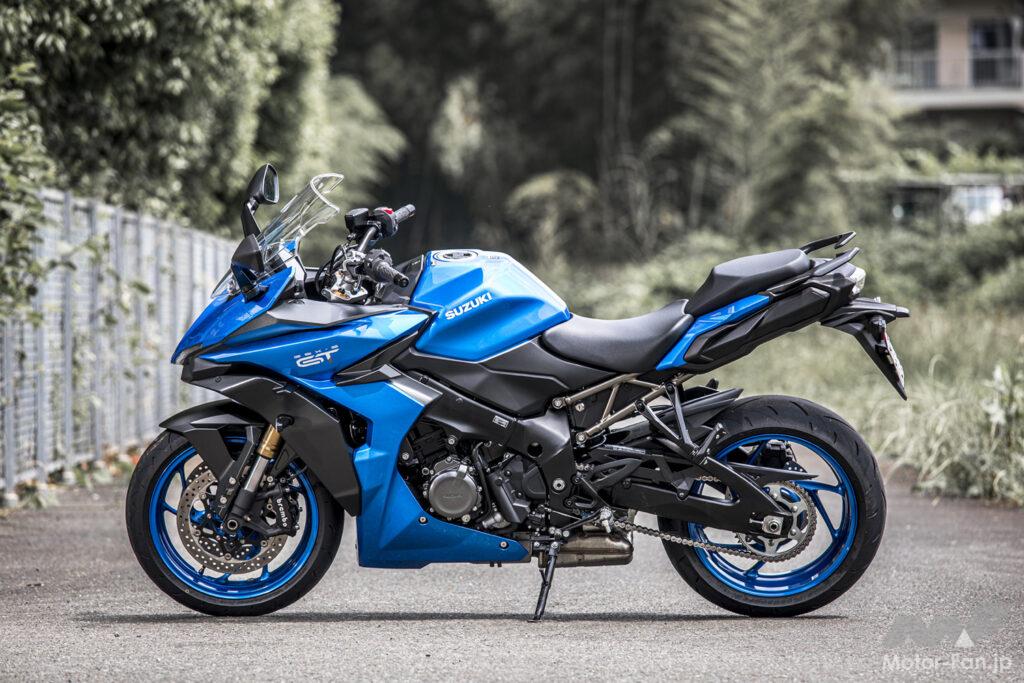 そのGSX-S1000は2021年にフルモデルチェンジ。スタイリングをより過激なストリートファイターテイストにし、電子制御スロットルをはじめとした各種電子制御システムを搭載。ところがハーフカウルモデルの発表はなかった。しかしすぐにその理由がわかった。スズキは新型GSX-S1000に対して単純にカウルを装着するのではなく、明確にコンセプトを変更したニューモデルを用意していた。それが低く構えたノーズと伸びやかなボディーラインを持つスポーツツアラー・GSX-S1000GTである。