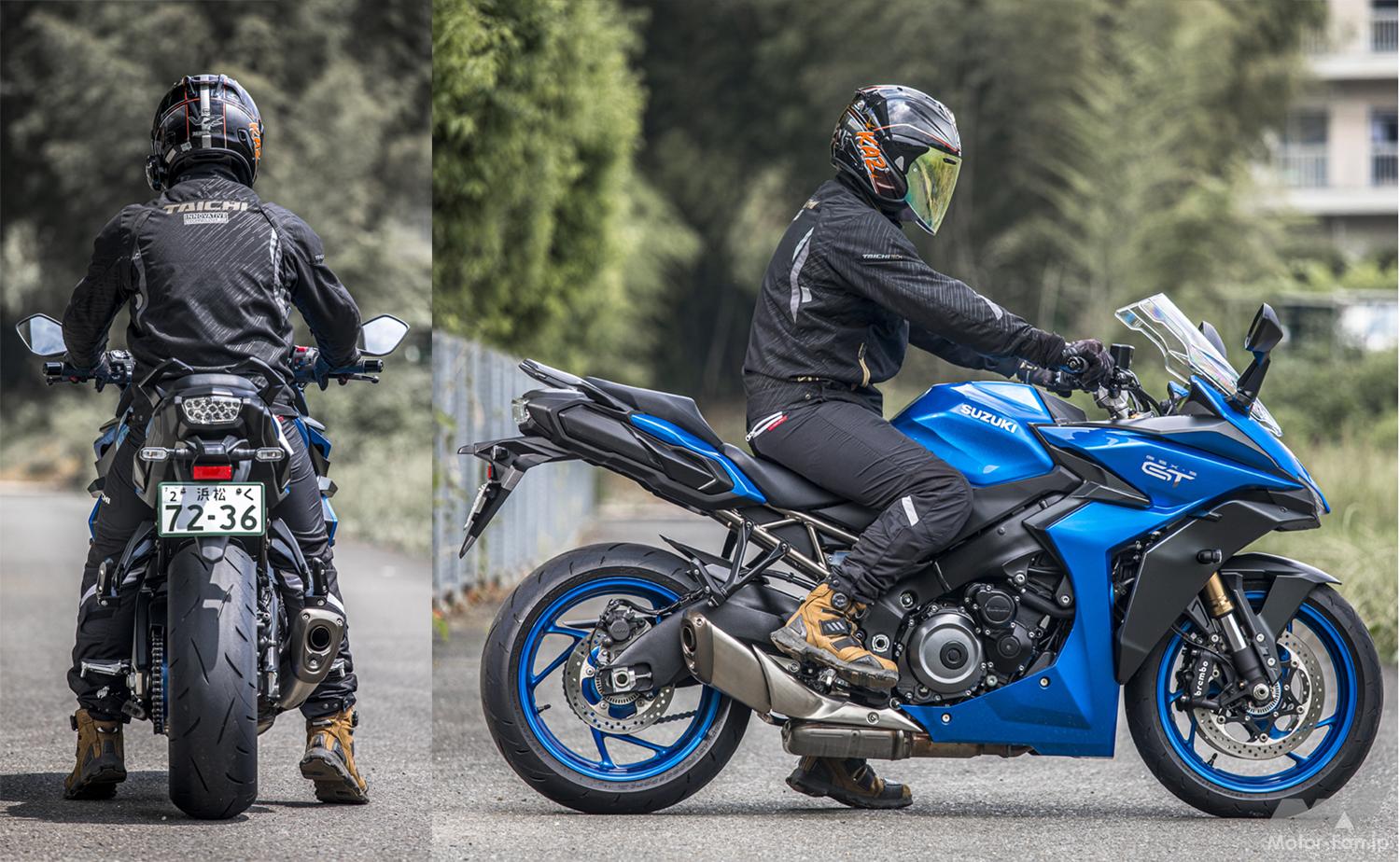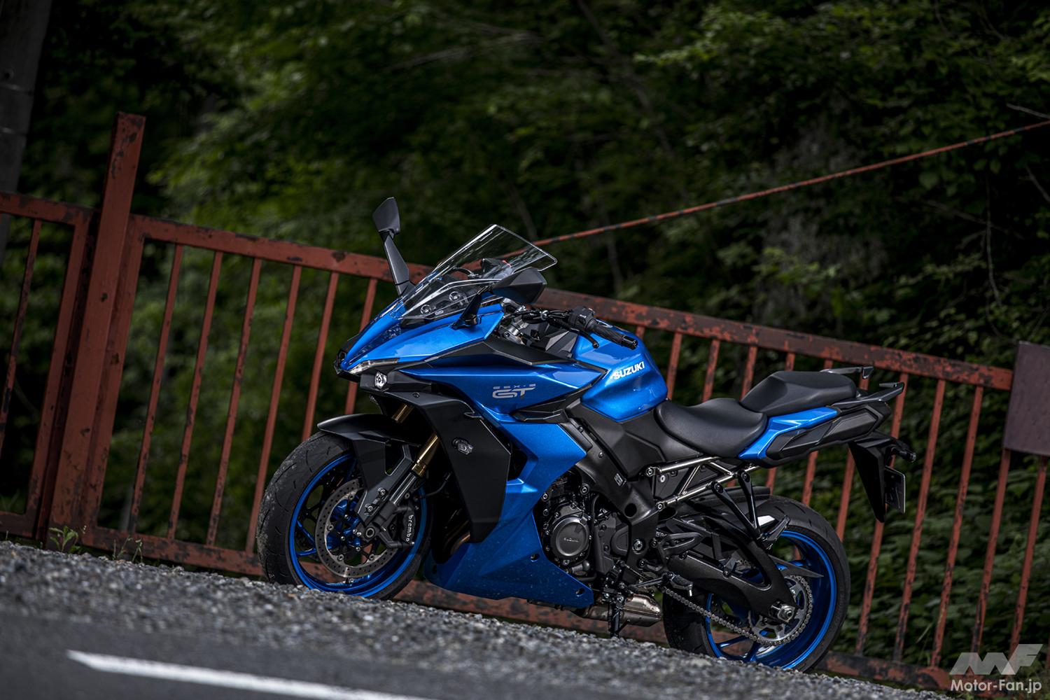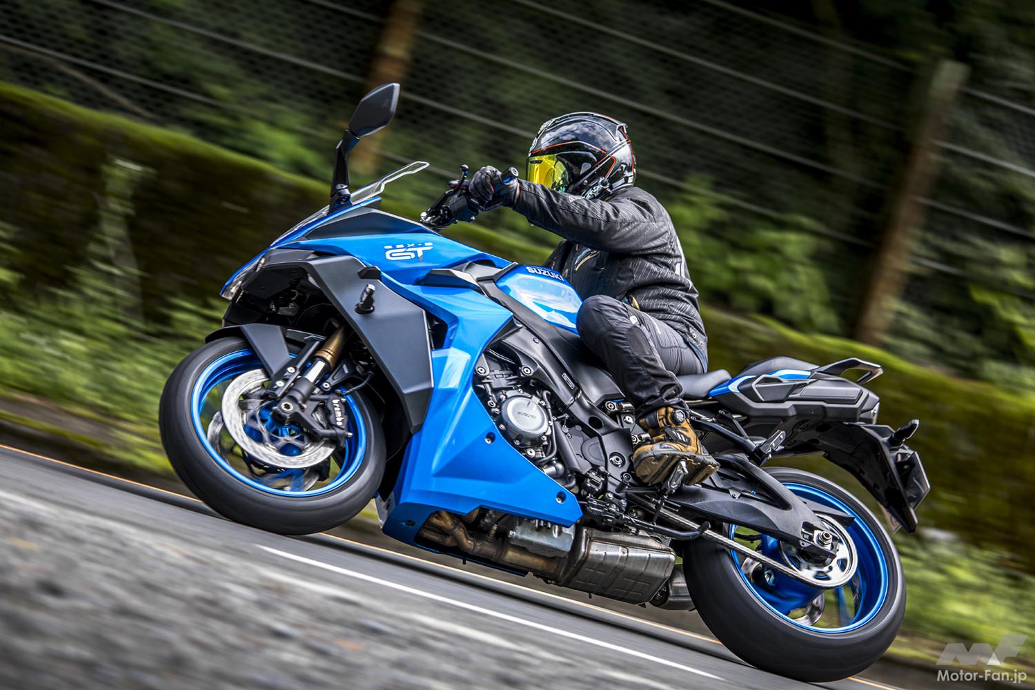 GSX-S1000Fのキャラクターを残しつつ、よりツアラー指向へと振ったGSX-S100GT。スポーツ走行性能を大きく損なうことなく長時間乗っていても疲れないフィーリングや積載性の増加などを実現している。メインはツーリングに使いたいけれど、スポーツライディングに対する想いも残っている、なんて人にとってはベストな選択になるだろう。
