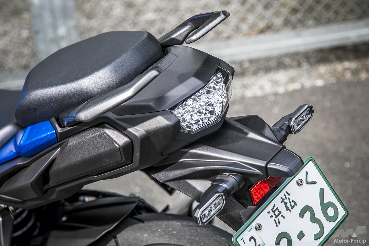 個人的に好みだったのはAモード。大柄な車体をキビキビと走らせることができ、コントロールから外れることもなかった。余談ではあるが、兄弟モデルのカタナに試乗したときはAモードだとアクセルへのツキが良すぎる感覚で、Bモードのほうが気分良く走れた。メーカーによると両車の電子制御システムのセッティングは同じだという。不思議に思ったが車重やサスセッティング、乗車位置、姿勢などが影響しているのだろう。