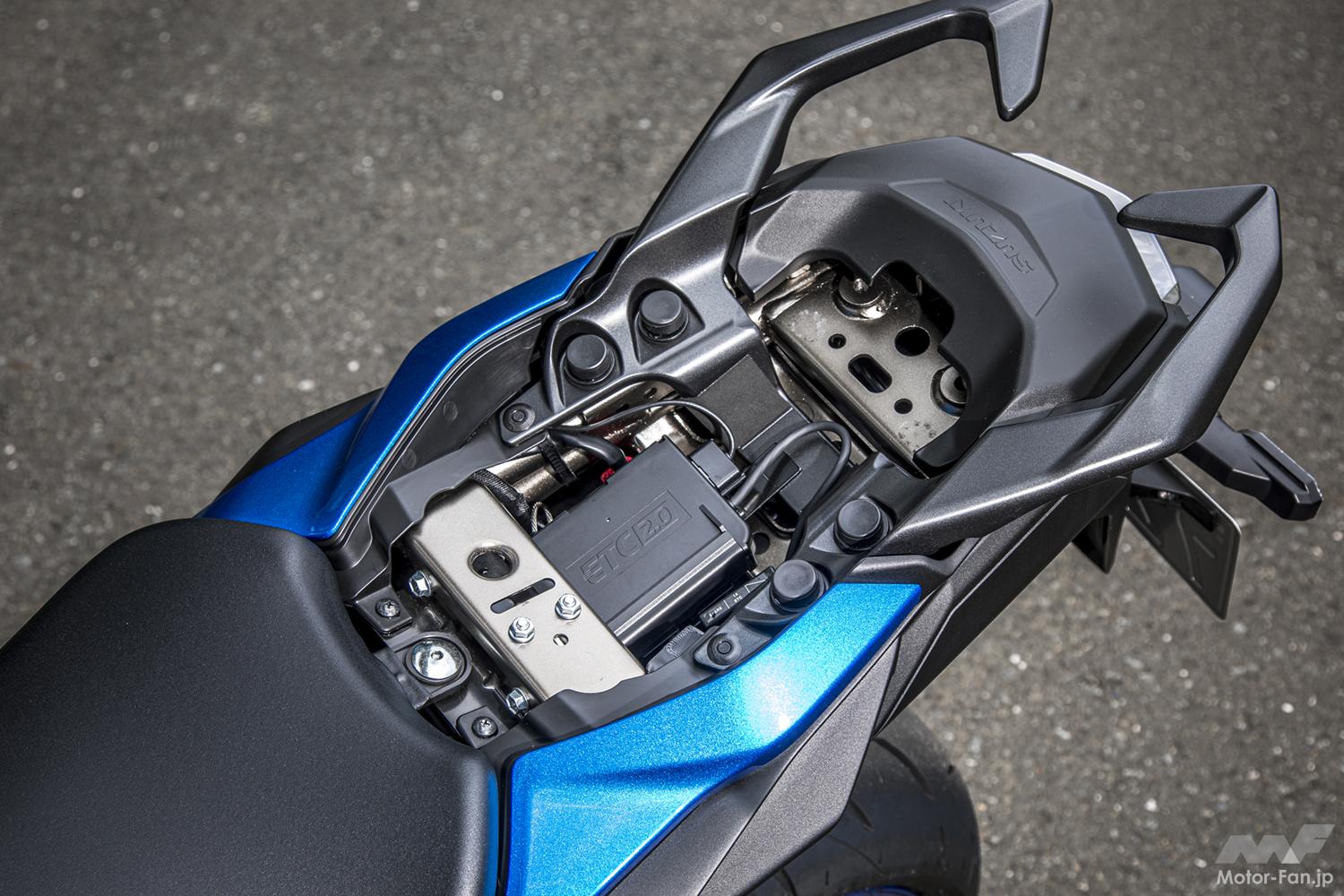専用ブラケット(別売)を介して取り付けるのだが、ツアラー感あるスタイリングがビシッと決まる。実際にツーリングでの使い勝手も良いので、ぜひセットで購入してもらいたい逸品だ。どうせなら標準装備にしてもイイんじゃないっすか、スズキさん!