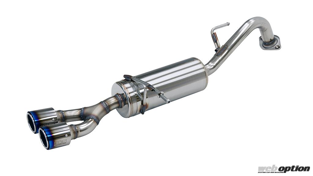 また、テールエンドにはHKSロゴが刻印された美しいチタン製のフィニッシャーカバーを採用。ハイエンドマテリアル特有の美しいヒートグラデーションが、スポーティなイメージを与えてくれる。レイアウトは45Φ→42.7Φ×2でテールパイプは75Φの2本出しだ。