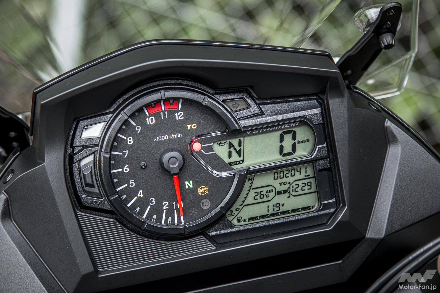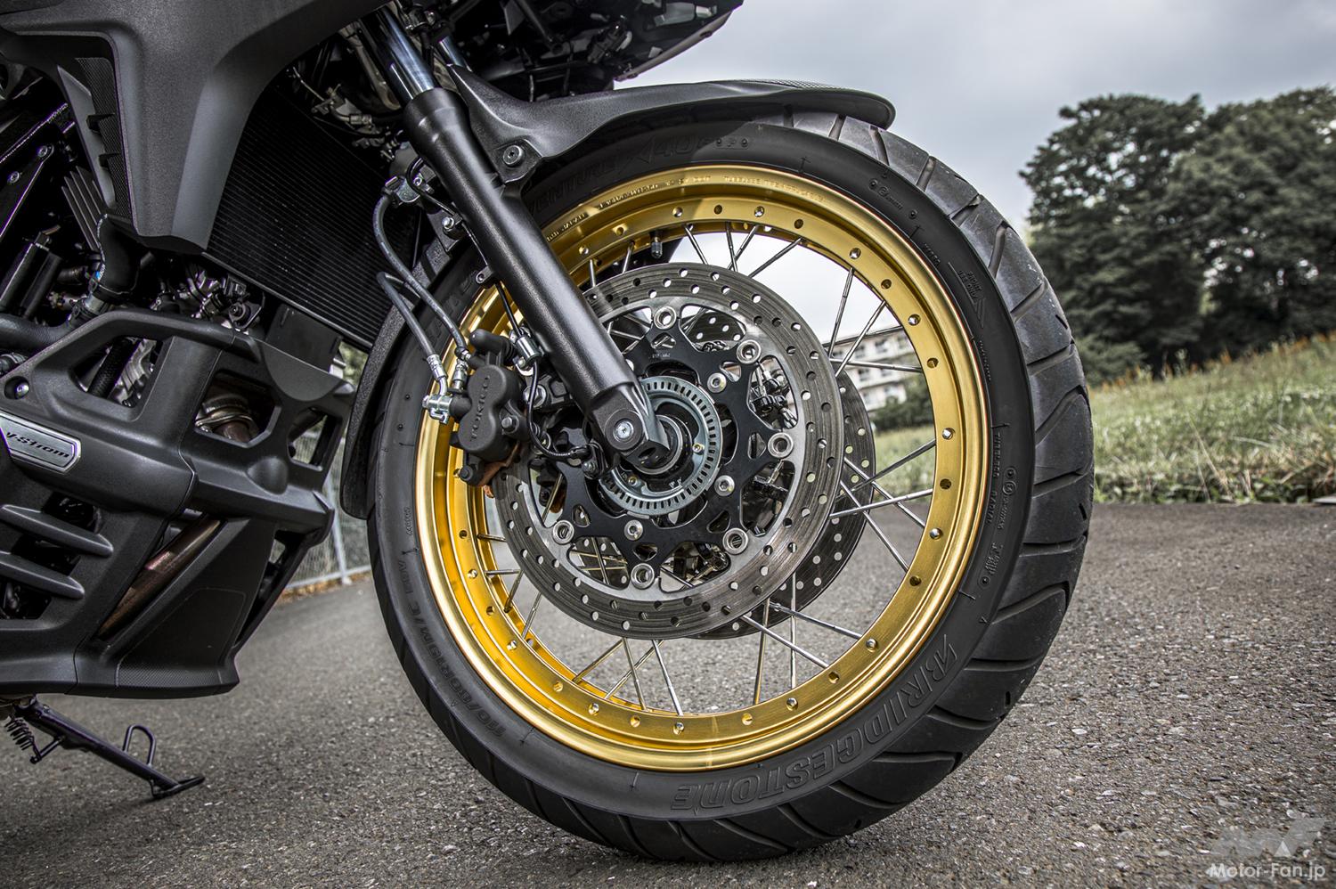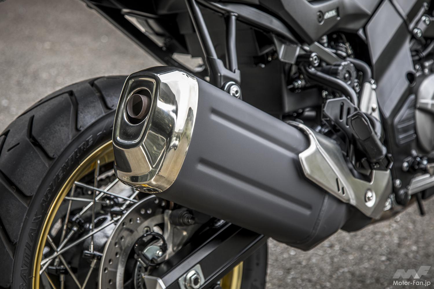 搭載されているDOHC90°Vツインエンジンは1999年にデビューしたSV650が元祖。長い時間をかけて熟成させ、アドベンチャー向けに専用セッティングを施している。セルボタンを押すとすぐに目覚め、規則正しいアイドリングを刻む。アクセルに対するツキは良好で、吹け上がりのスムーズさも増している印象だ。SV650の頃から好印象を持っていたパワーユニットだけに走りへの期待も高まる。