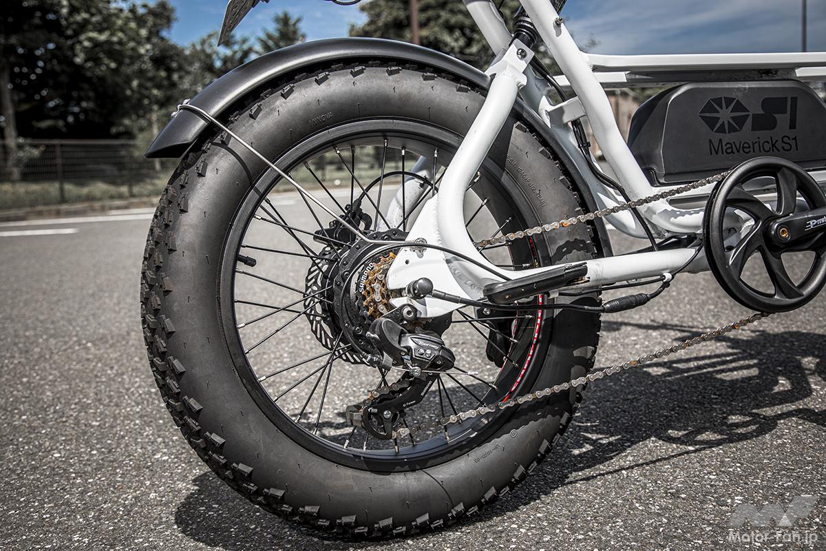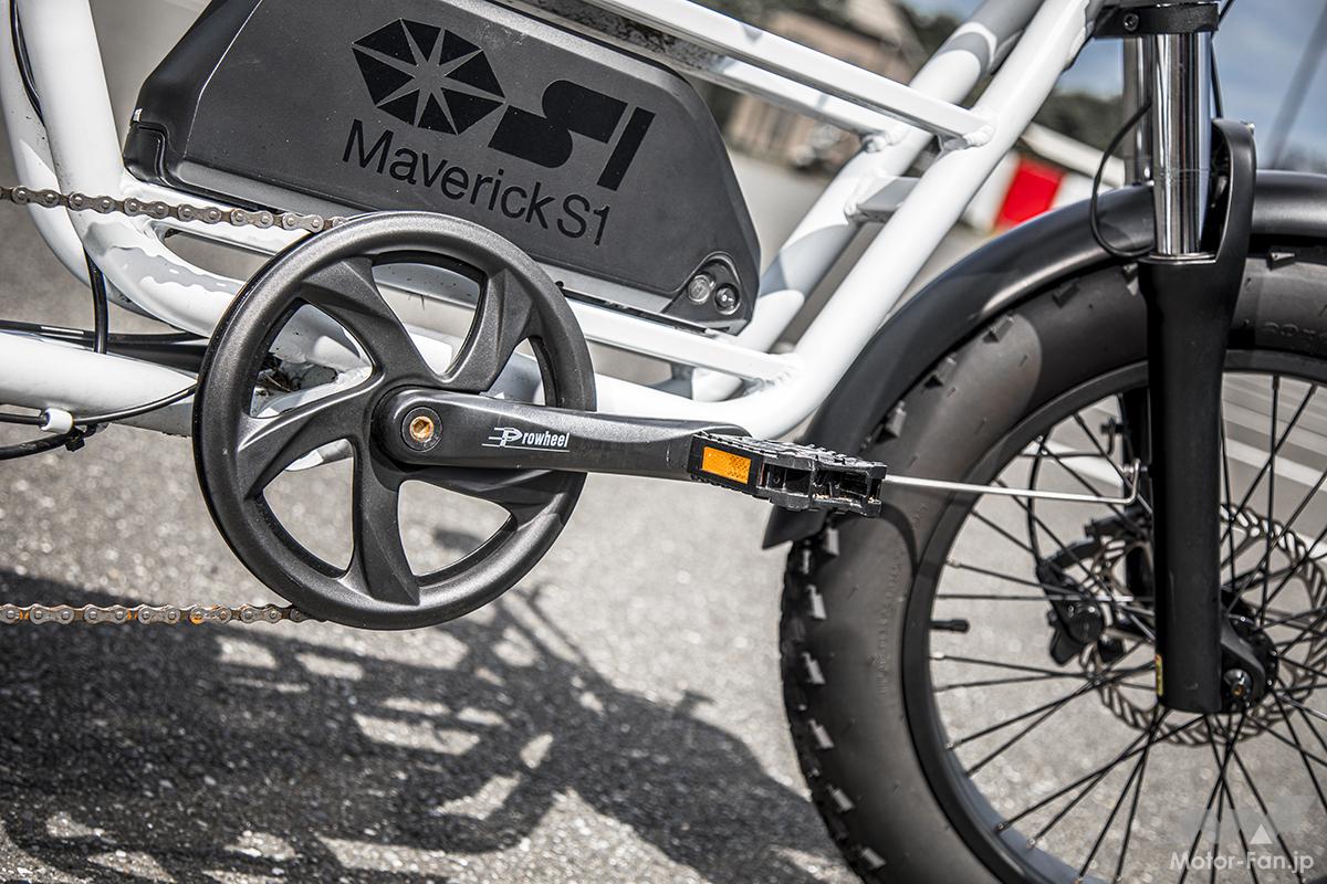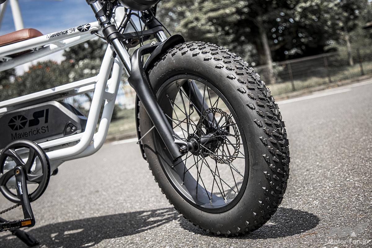 自転車の手軽さと、原付バイク並の機動力を確保した、新時代の超個性派コミューター・マーベリック(Maverick)S1シリーズ。ファットな直径20インチ&幅4インチの前後タイヤ、高い剛性を確保したアルミフレーム、高速域でも安定した走りを実現する前後サスペンション、制動力に優れた前後ディスクブレーキ、60Vのハイパワー電動モーター(ハブにモーターを設置したインホイール型)、大型バッテリー、シマノ製7段変速ギアなどを採用。頑強なフレームや足周りと豊富なオプションパーツにより、サーフボードやクーラーボックスのような大きな荷物の運搬も可能だ。