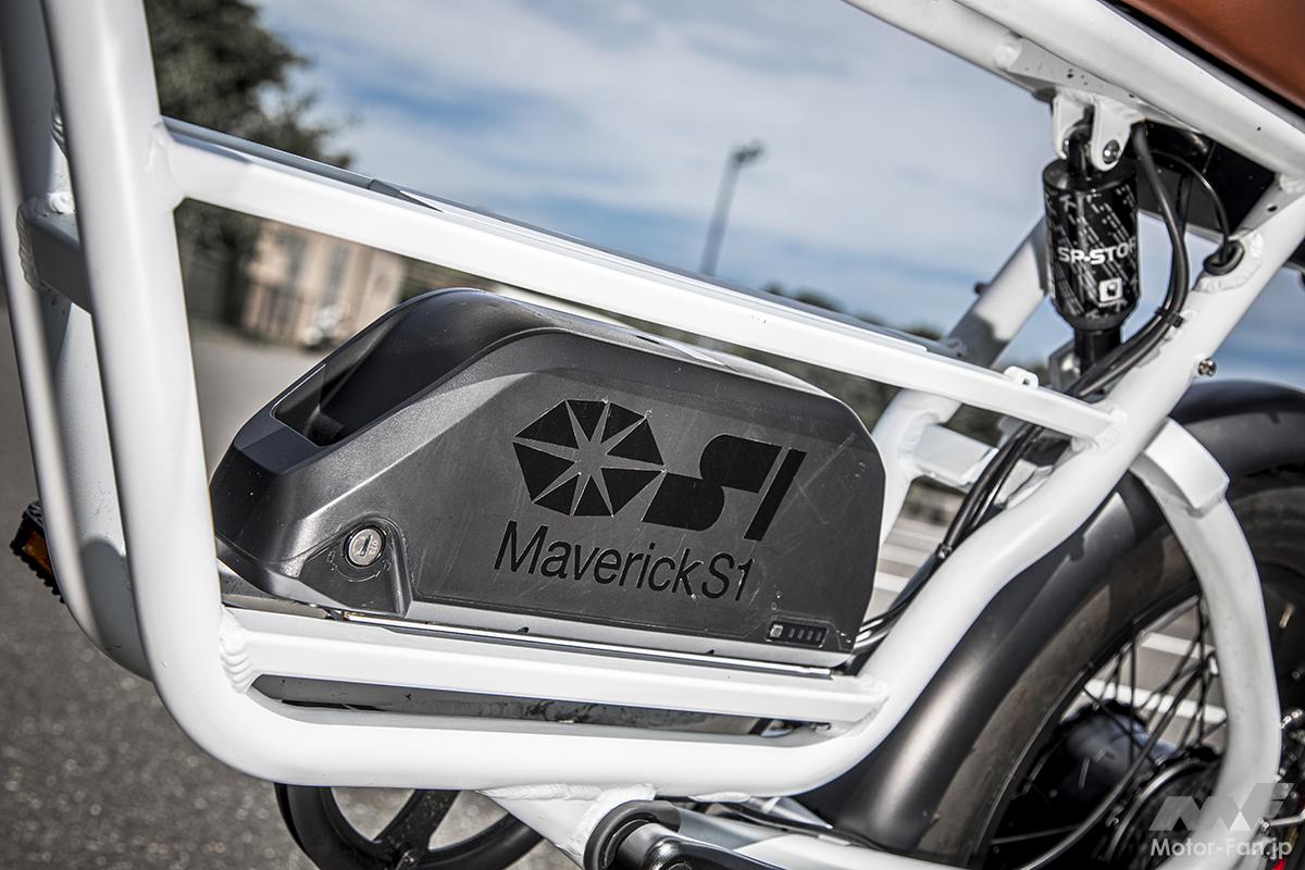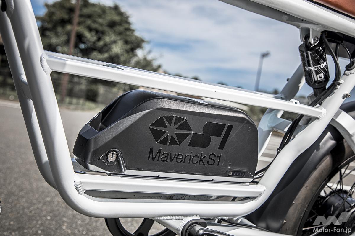 マーベリックS1シリーズは、「電動バイクでエンジン車並みの航続距離を実現したい」という思いから、バッテリーを2個積載可能。市販時の標準装備は1個だが、別途追加購入して2個積めば、2倍の距離を走行できる。航続距離はバッテリー1個搭載時で50km、2個搭載時で100km(平均時速30km/h走行・メーカー発表値)。
