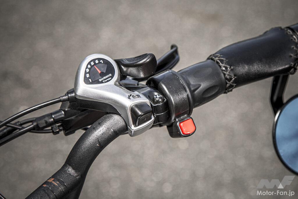試しに両手で持ち上げてみると、比較的余裕をもって持ち上げることができた。この点は、“モペッド”と呼ばれるペダル付きのエンジン車とは、大きく異なる車両だと痛感。